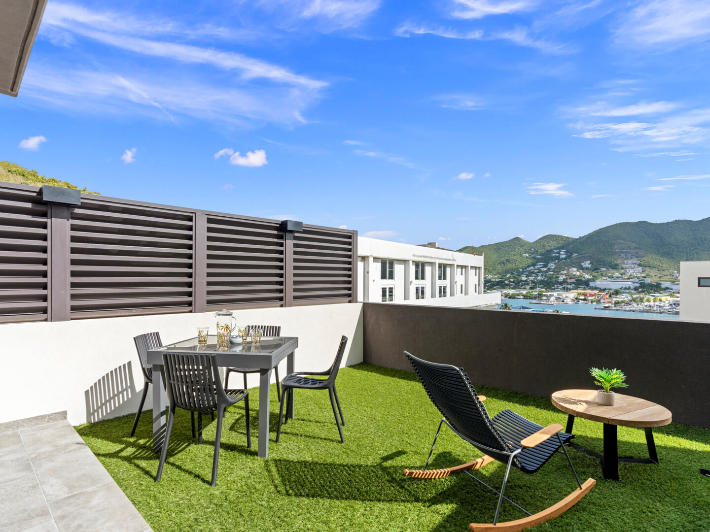 L’Appartement B207 à The Hills Residence à Simpson Bay, Sint Maarten, est un charmant refuge d’une chambre offrant un mélange exquis de confort et de style. L’élément phare de cet appartement est sa magnifique terrasse, qui offre une vue imprenable sur la lagune sereine, créant ainsi un espace parfait pour la détente ou des réunions intimes.