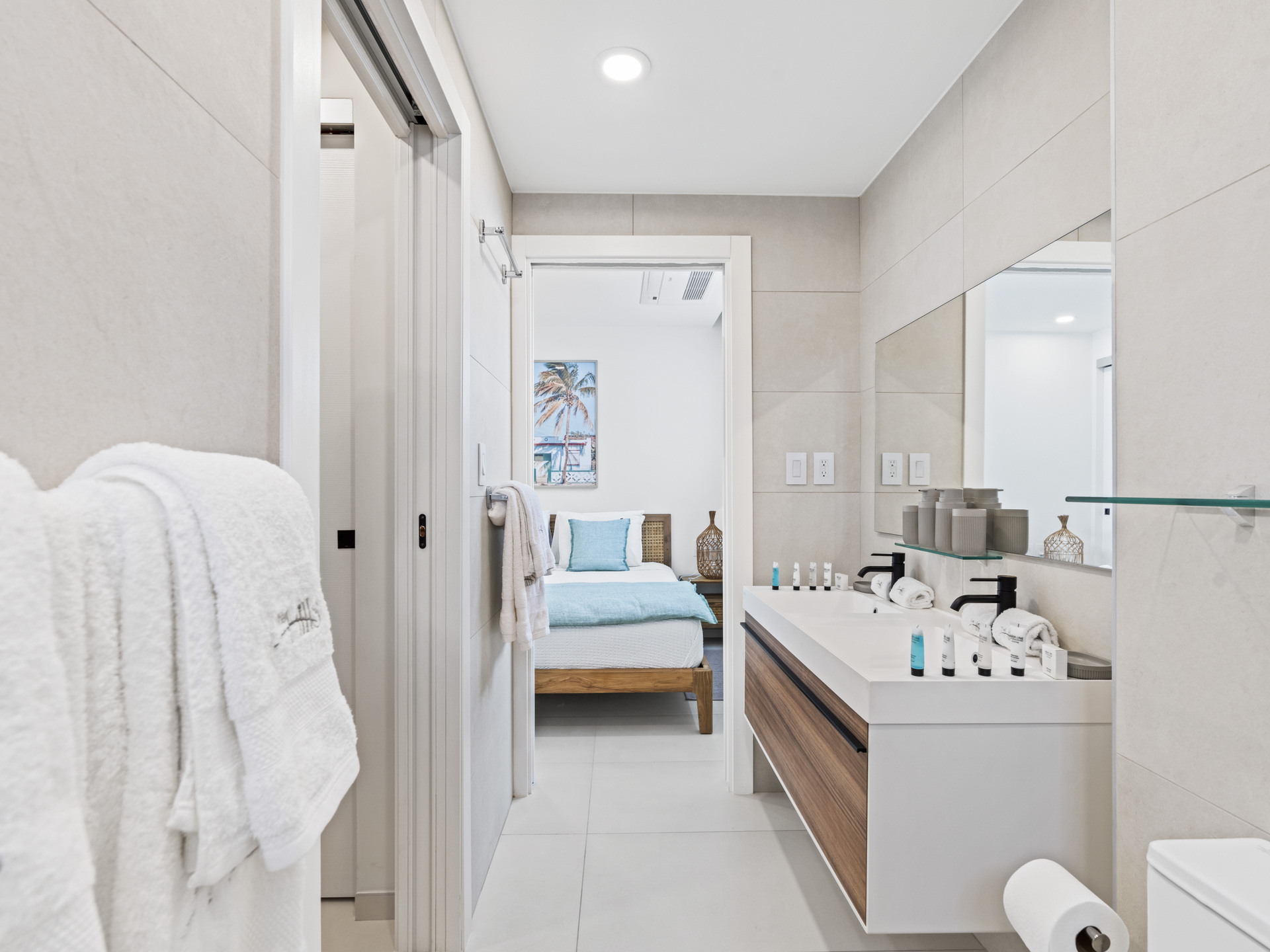 Dès que vous franchissez la porte, vous serez immédiatement captivé par l’atmosphère de sophistication et de tranquillité qui imprègne chaque recoin. La chambre principale est un havre de paix, équipée d’un lit confortable où vous pourrez vous détendre et vous ressourcer après une journée bien remplie à explorer les merveilles de Sint Maarten.