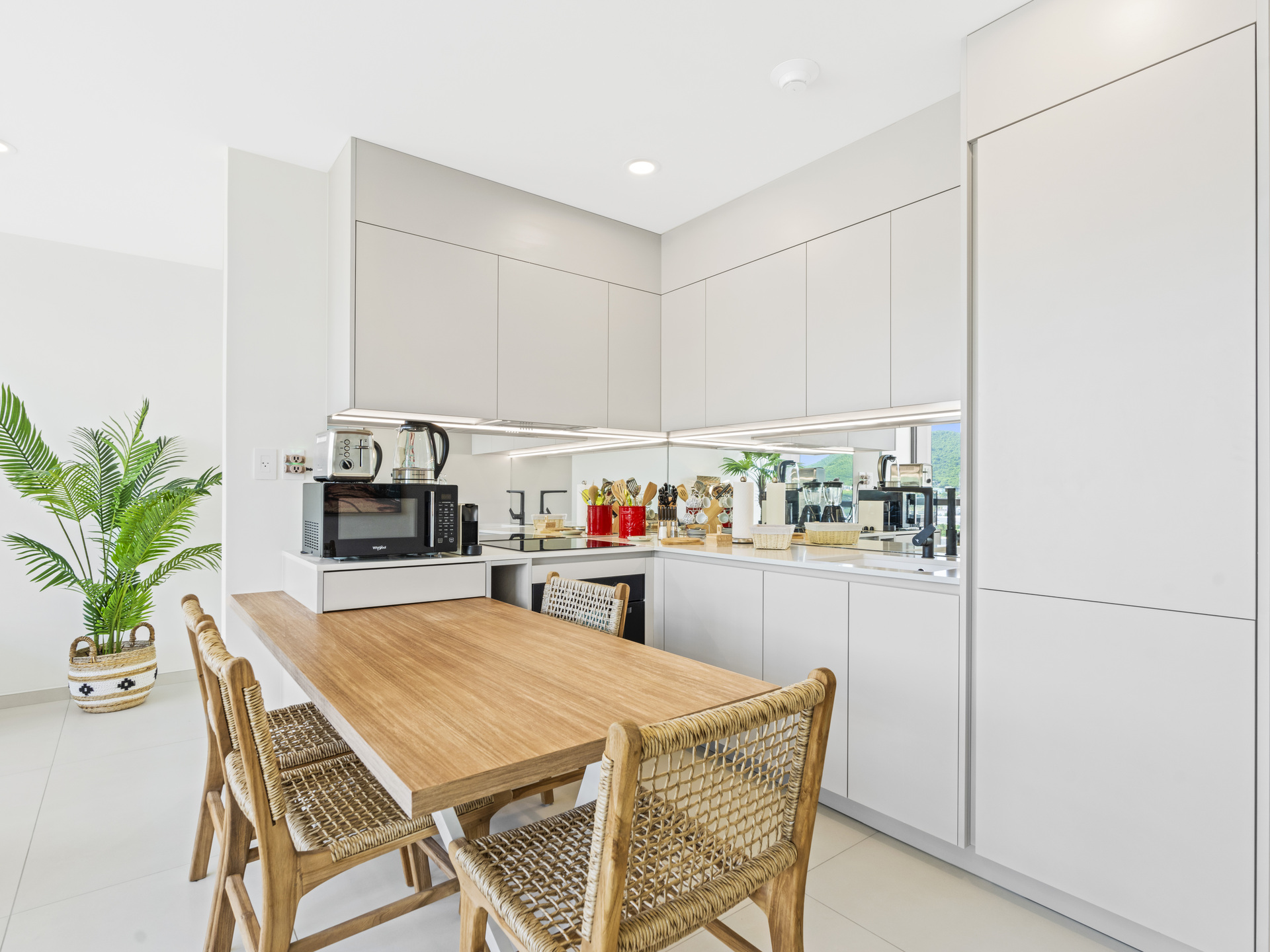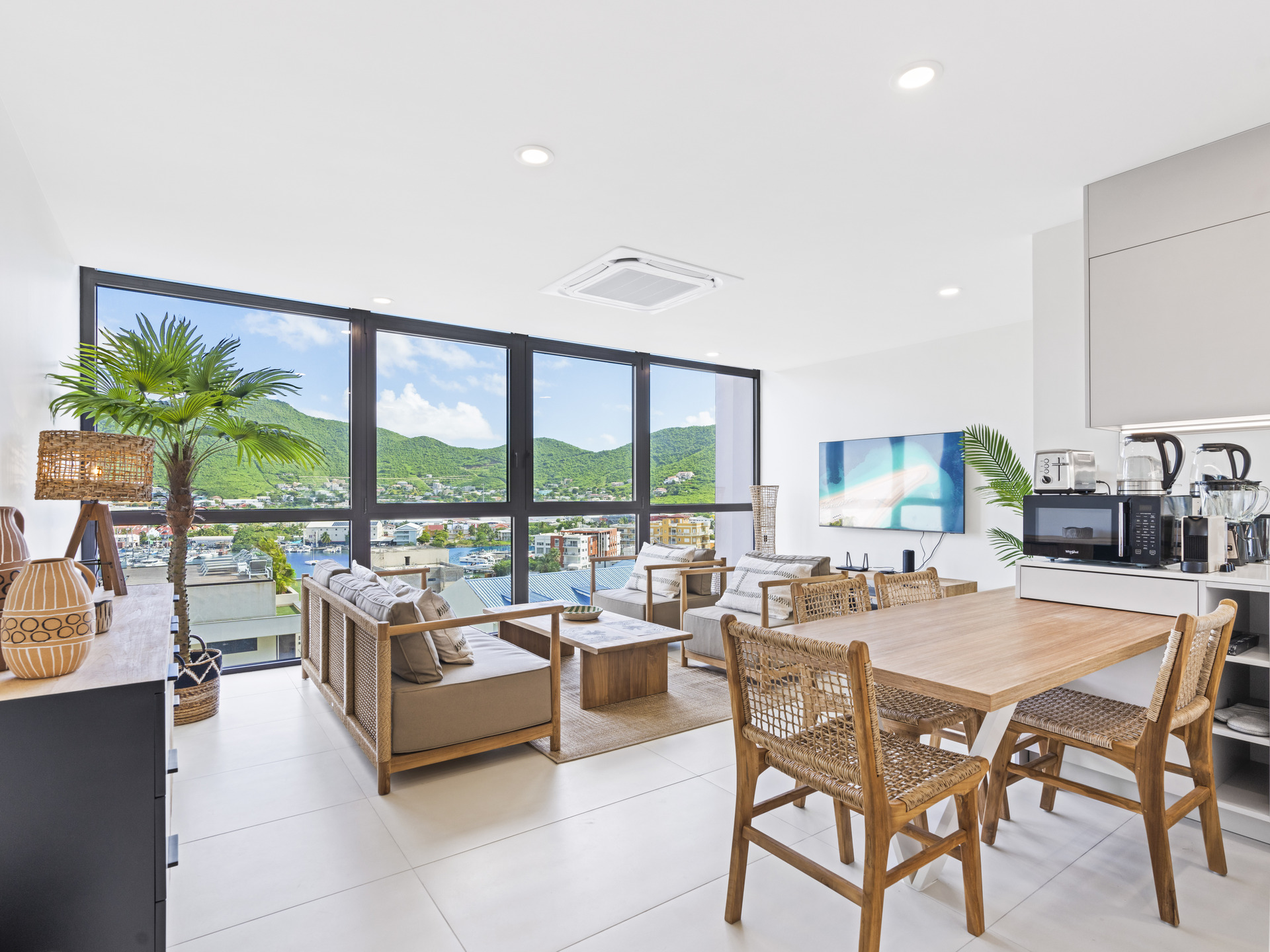 La cuisine entièrement équipée vous permettra de préparer de délicieux repas que vous pourrez déguster tout en admirant la magnifique vue sur la lagune de Simpson Bay. C’est l’endroit idéal pour vous détendre et recharger vos batteries.