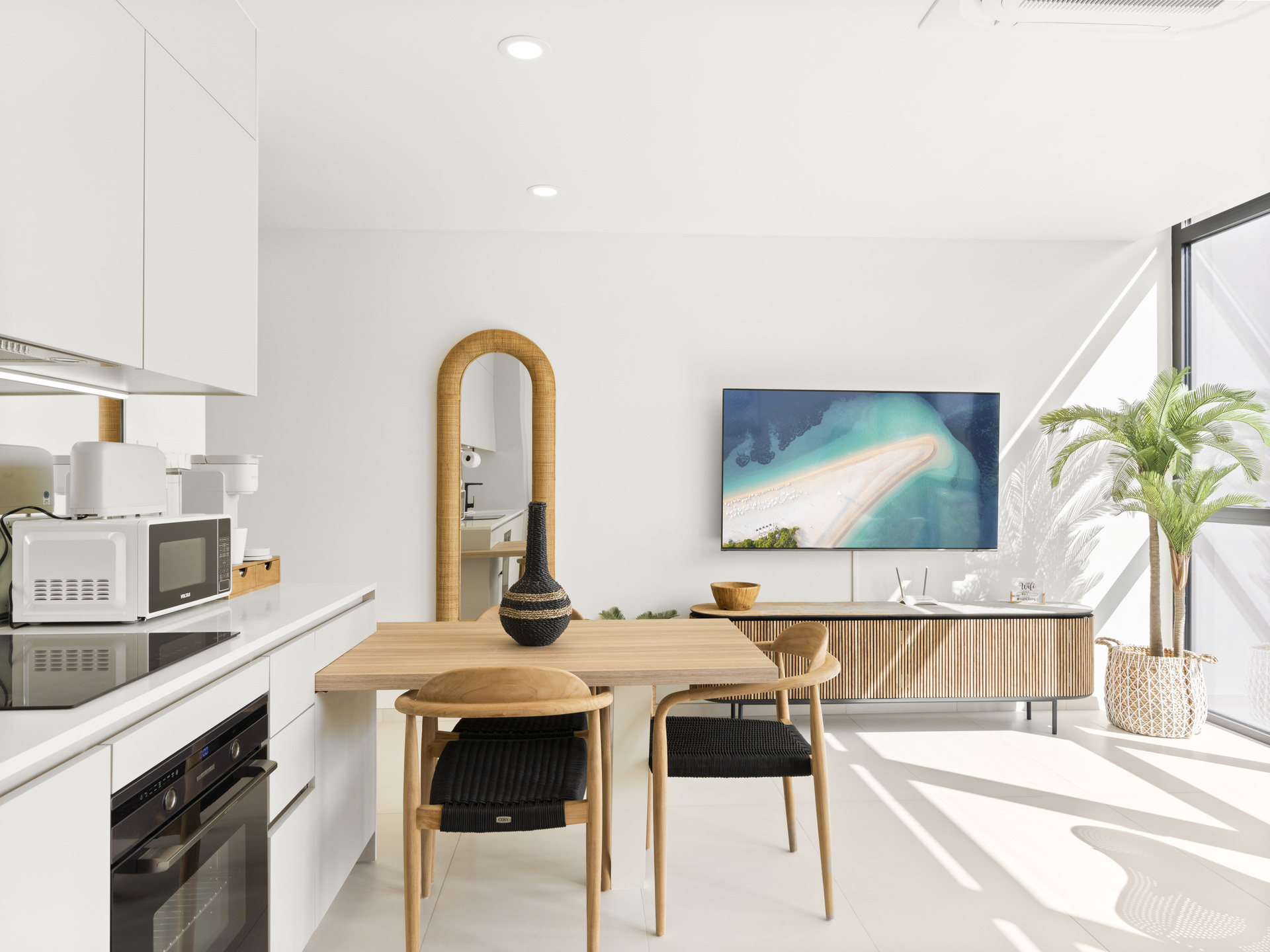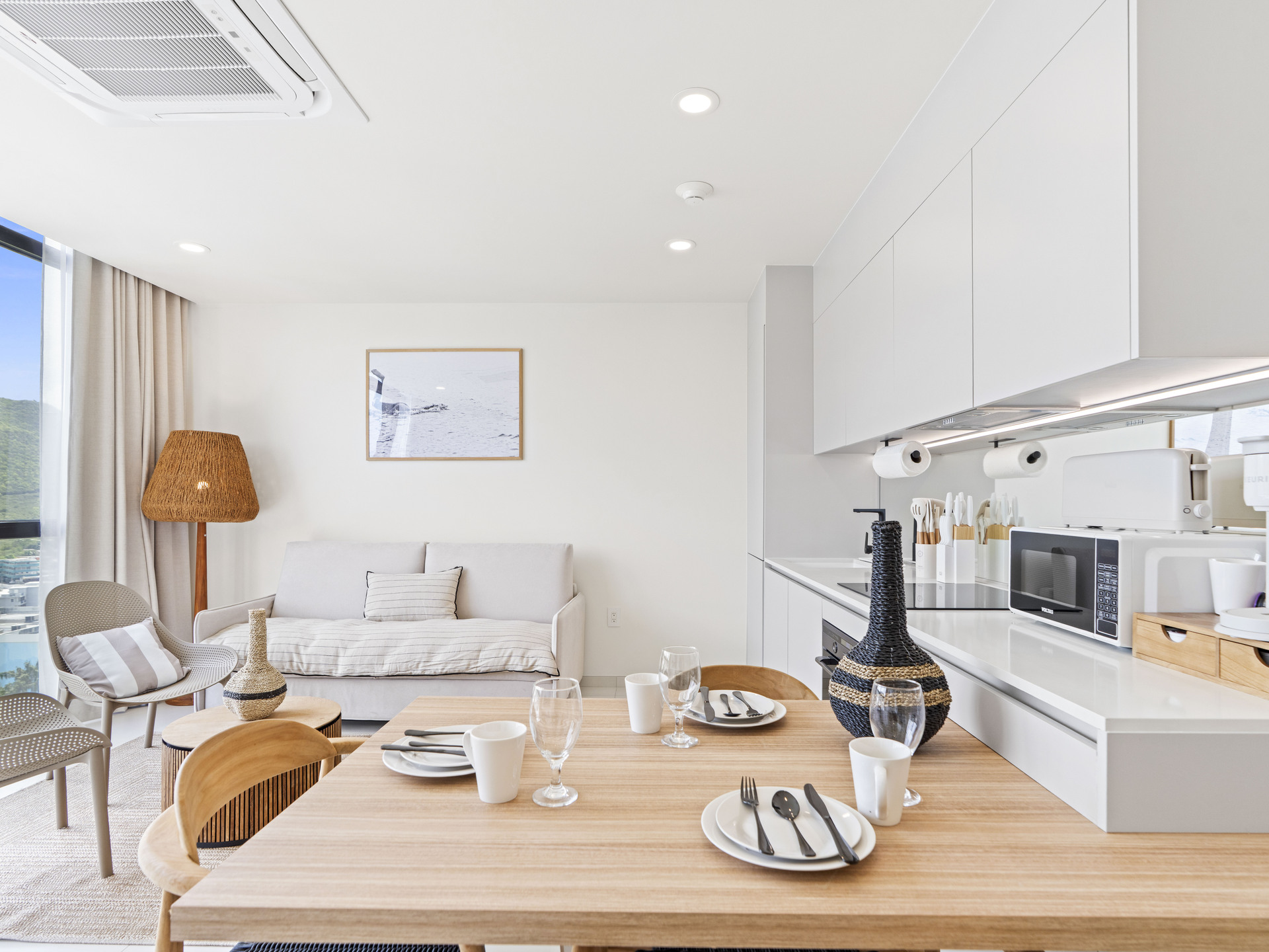 La cuisine entièrement équipée vous permet de préparer tout, d’un petit-déjeuner rapide avant la plage à un dîner romantique avec vue sur l’eau.