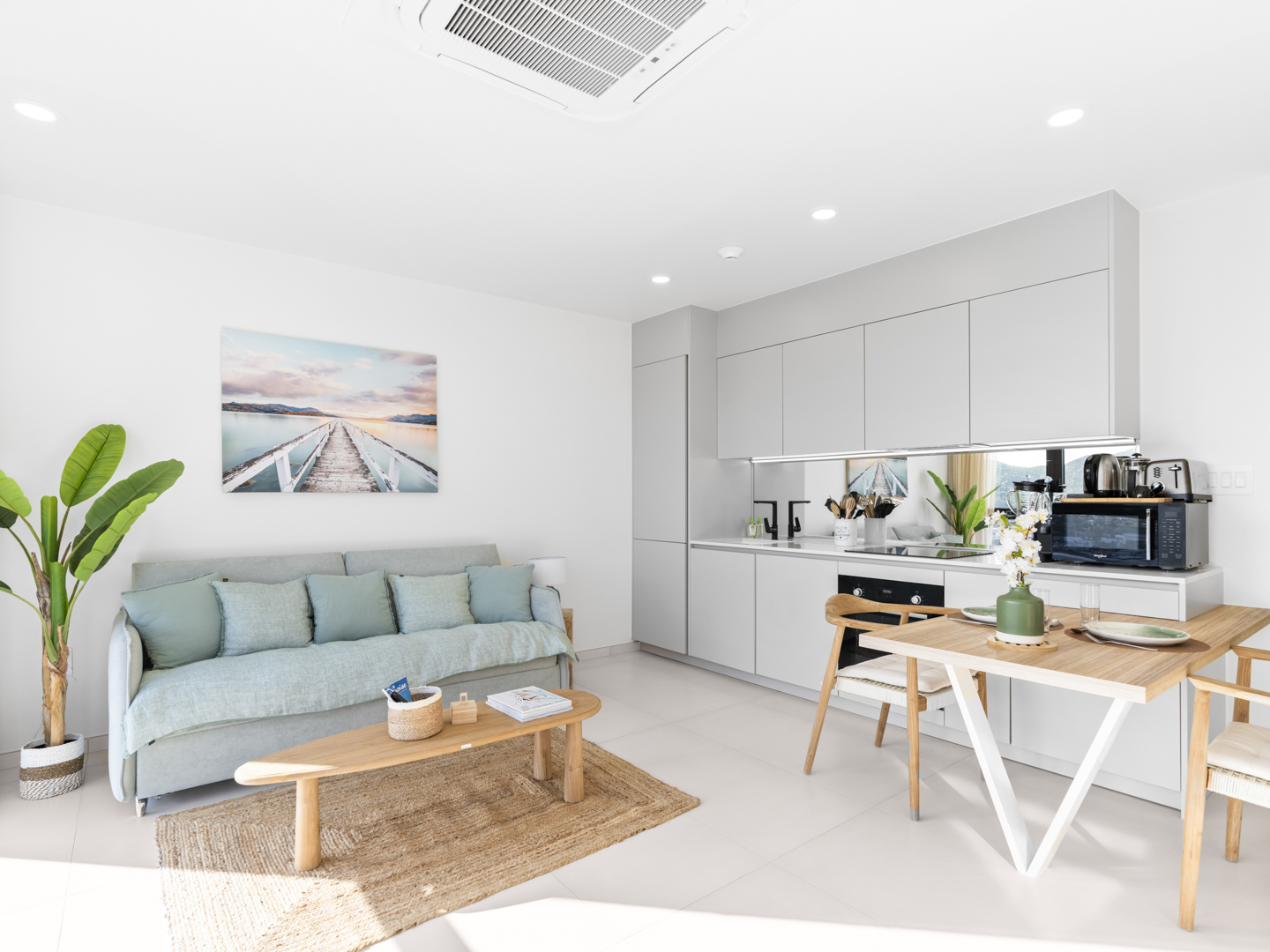 This one-bedroom condo features chic contemporary décor, an open-concept living area, and a fully equipped kitchen, perfect for guests who value style and functionality. Every element of D431 has been thoughtfully curated to provide a soothing yet sophisticated retreat where you can relax and recharge.