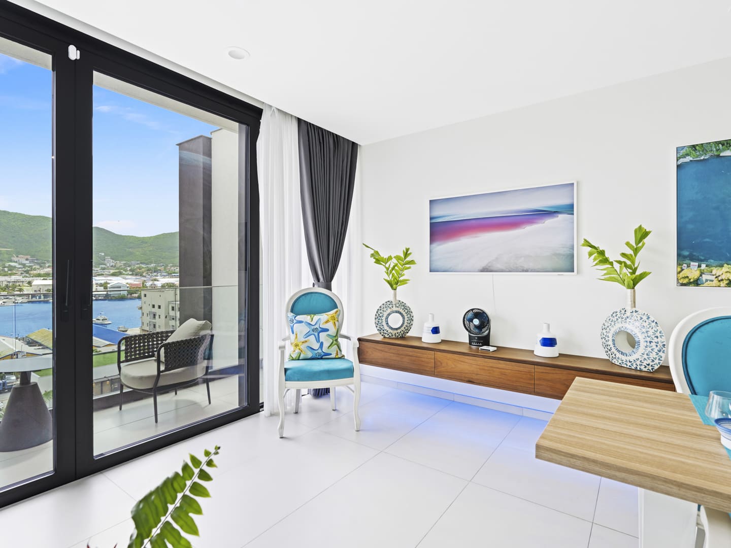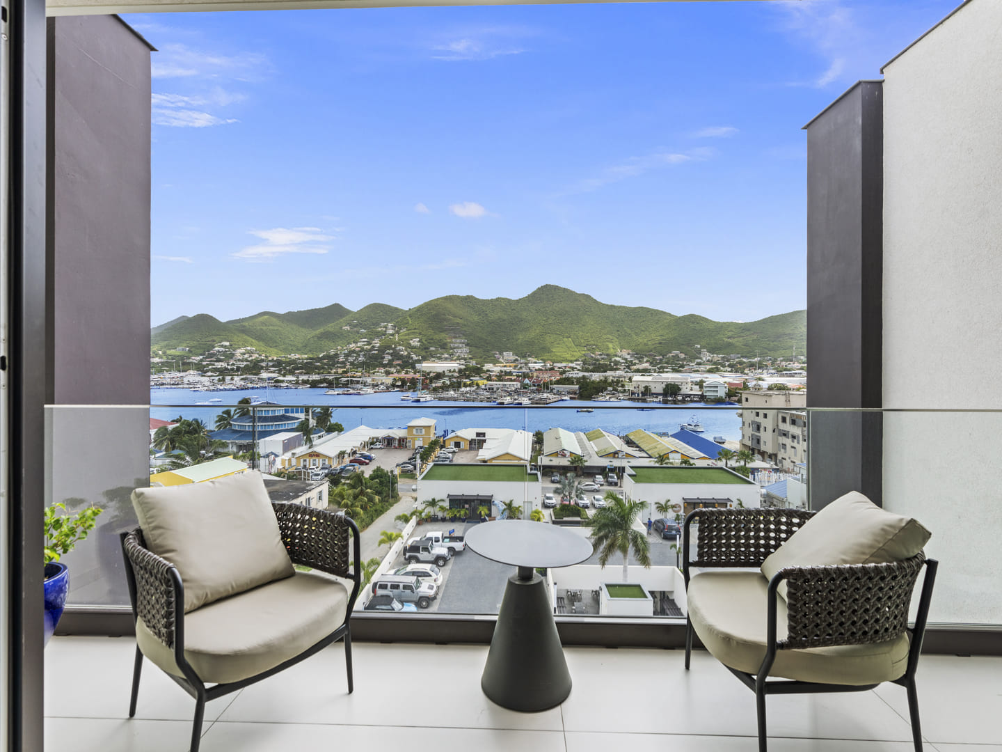 Welcome to A136, an elegant and spacious one-bedroom retreat at The Hills Residence, set in the lively heart of Simpson Bay, Sint Maarten. Designed for those who appreciate both luxury and comfort, this beautifully appointed apartment offers breathtaking lagoon views from your private balcony—an idyllic spot to relax and take in the Caribbean’s natural beauty.