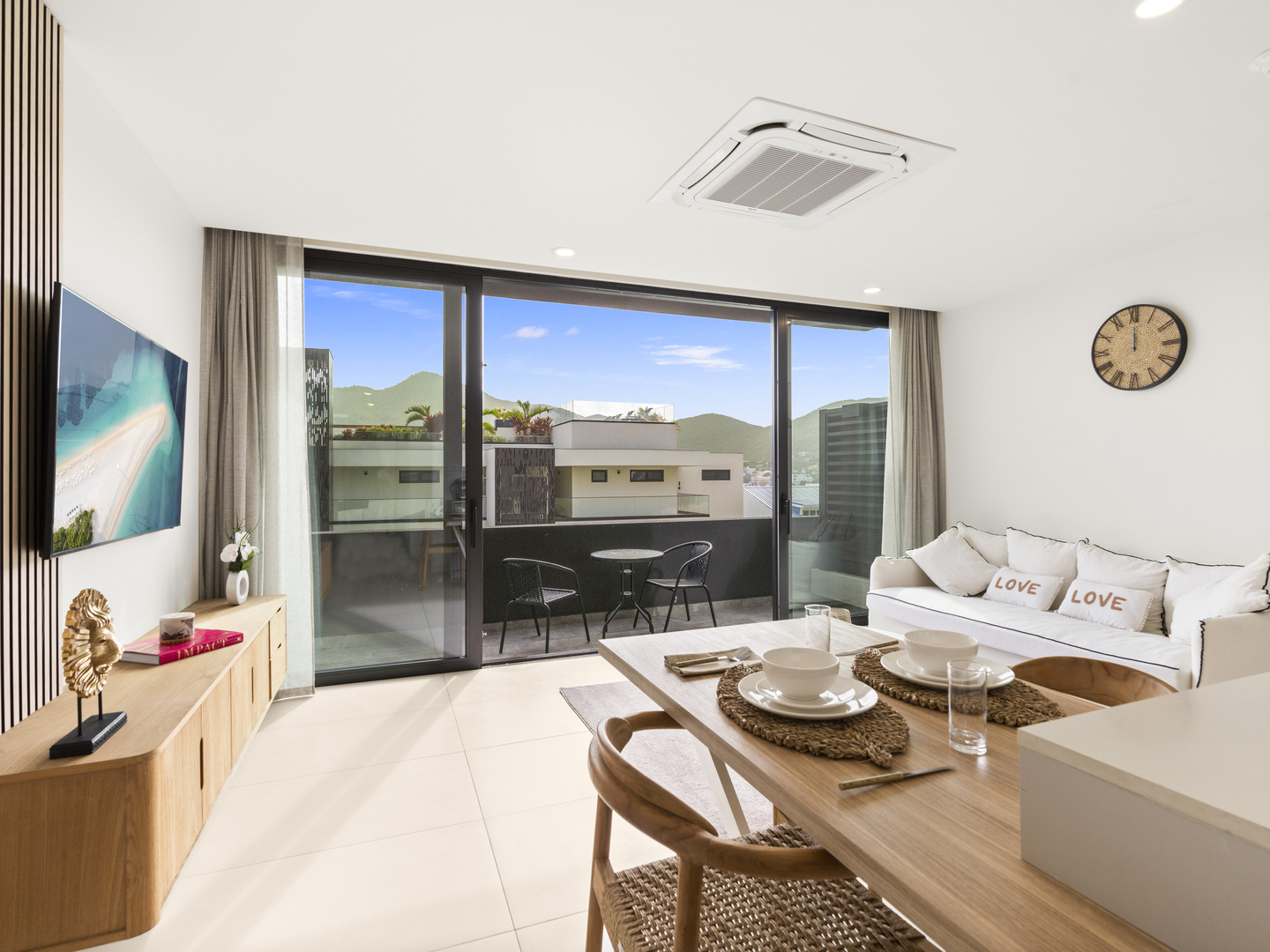 This thoughtfully appointed one-bedroom apartment provides a comfortable, practical retreat for solo travelers, couples, or anyone seeking a convenient base for island adventures.
