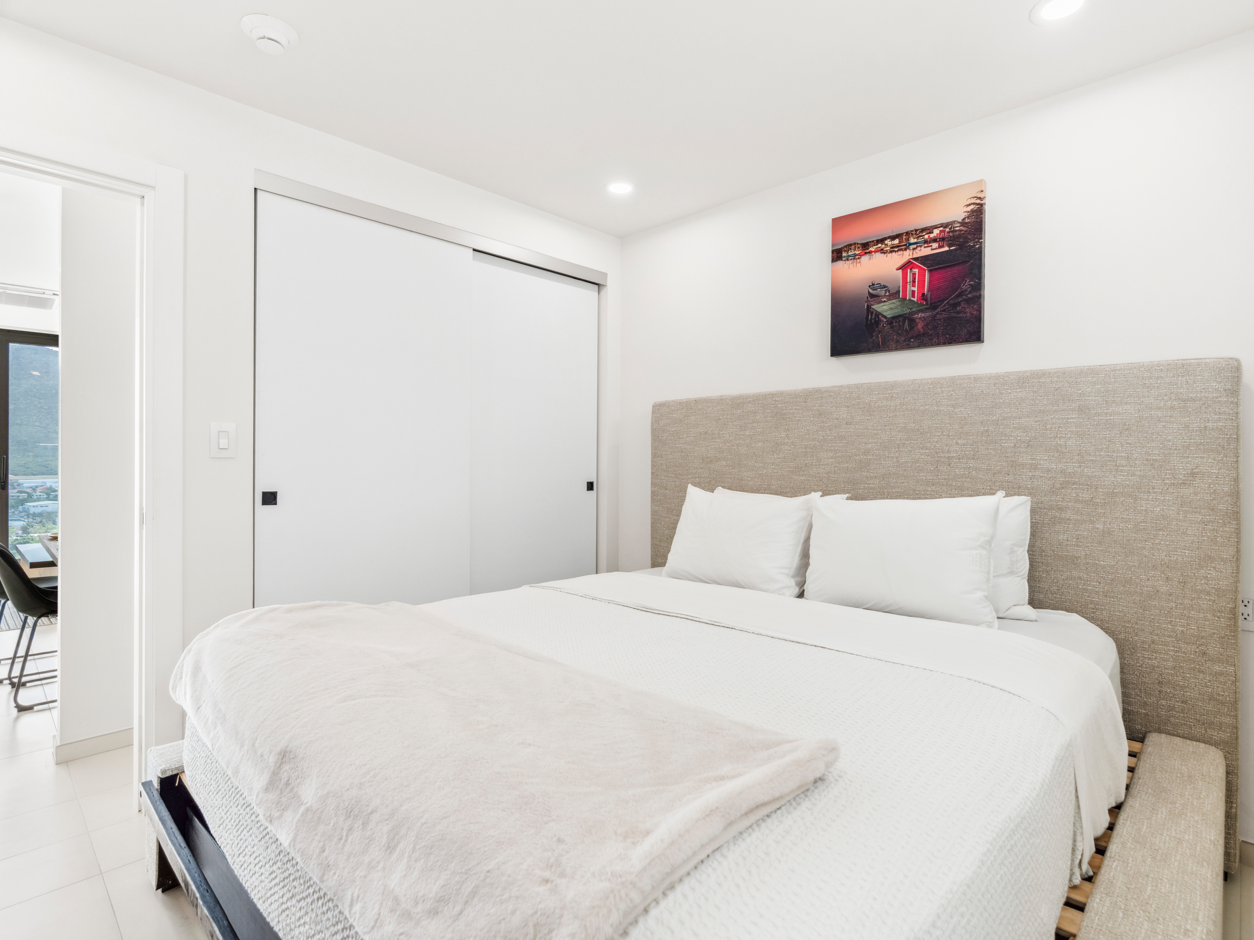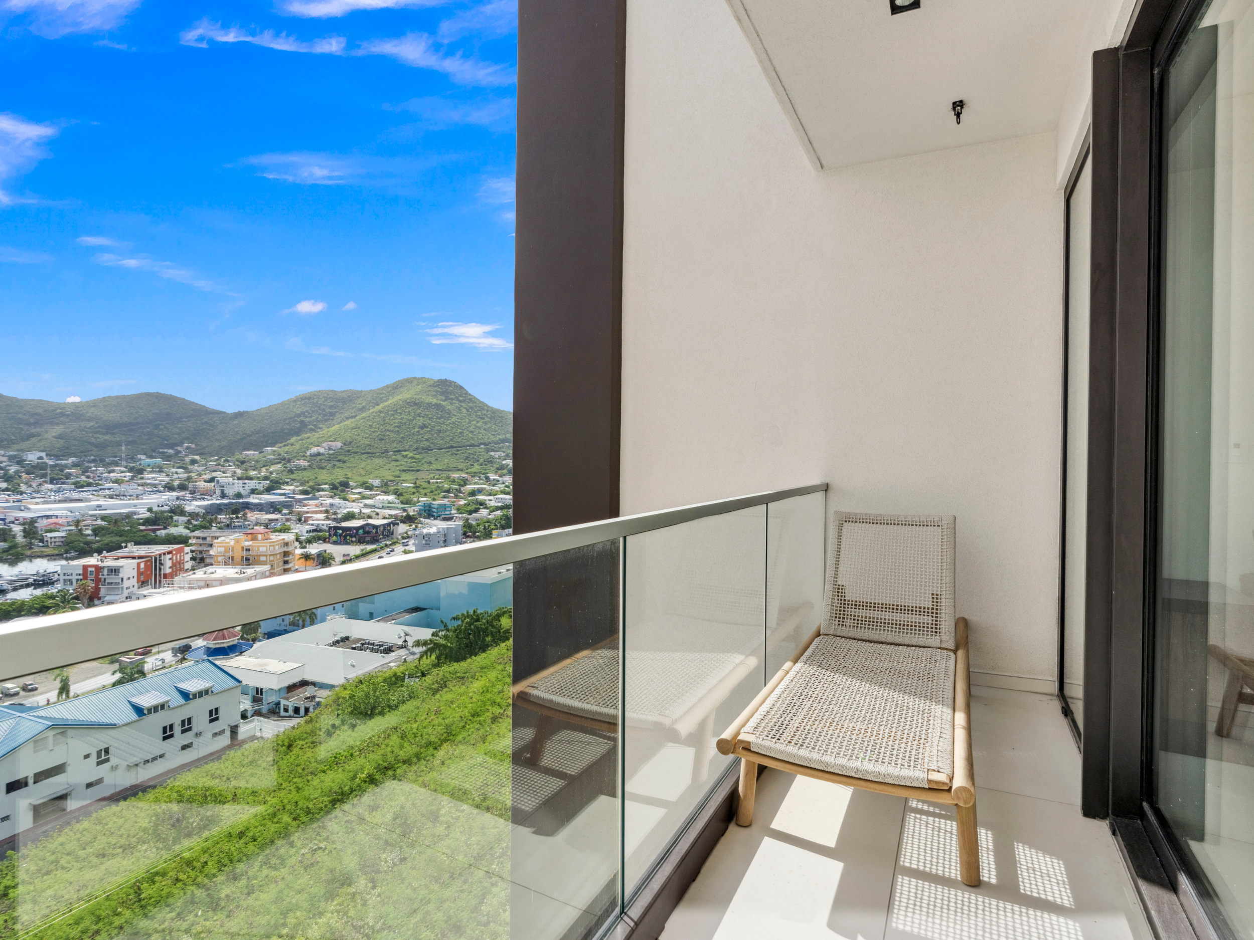 Unit C-342 boasts an open-concept living area bathed in natural light, seamlessly connecting to a fully equipped kitchen adorned with contemporary finishes. The spacious bedroom provides a peaceful retreat, while the private balcony invites you to unwind with panoramic views of the Simpson Bay Lagoon.