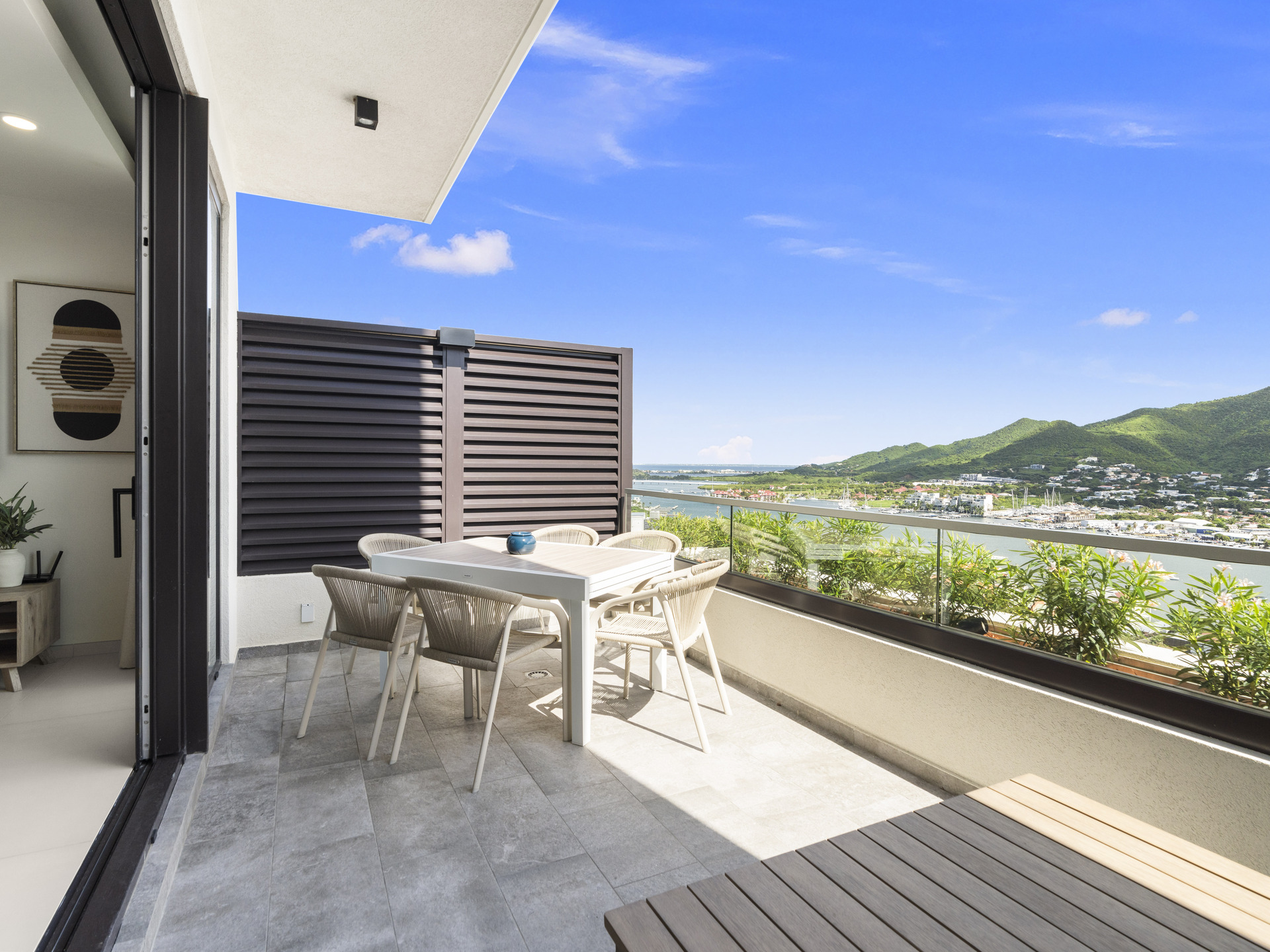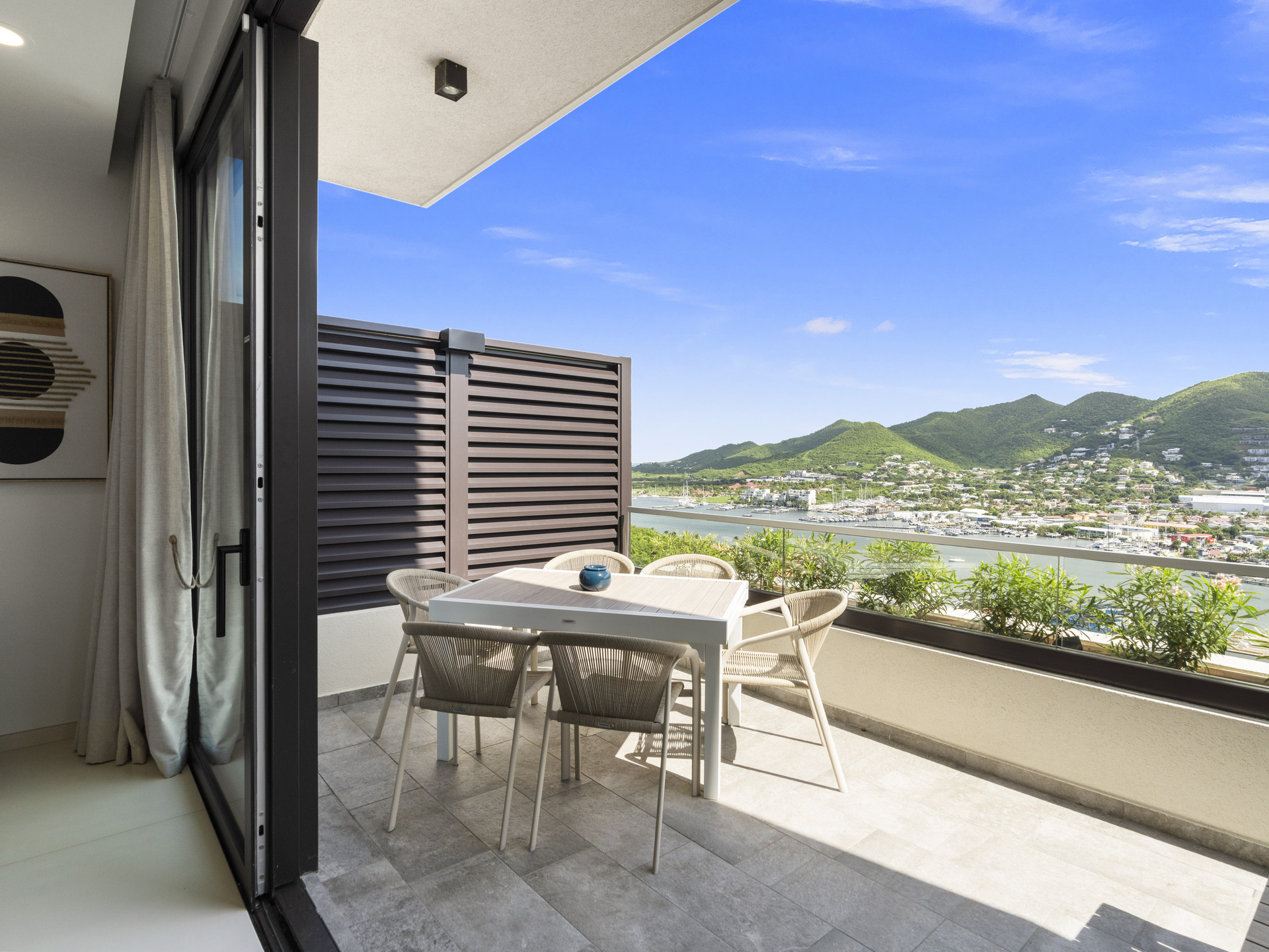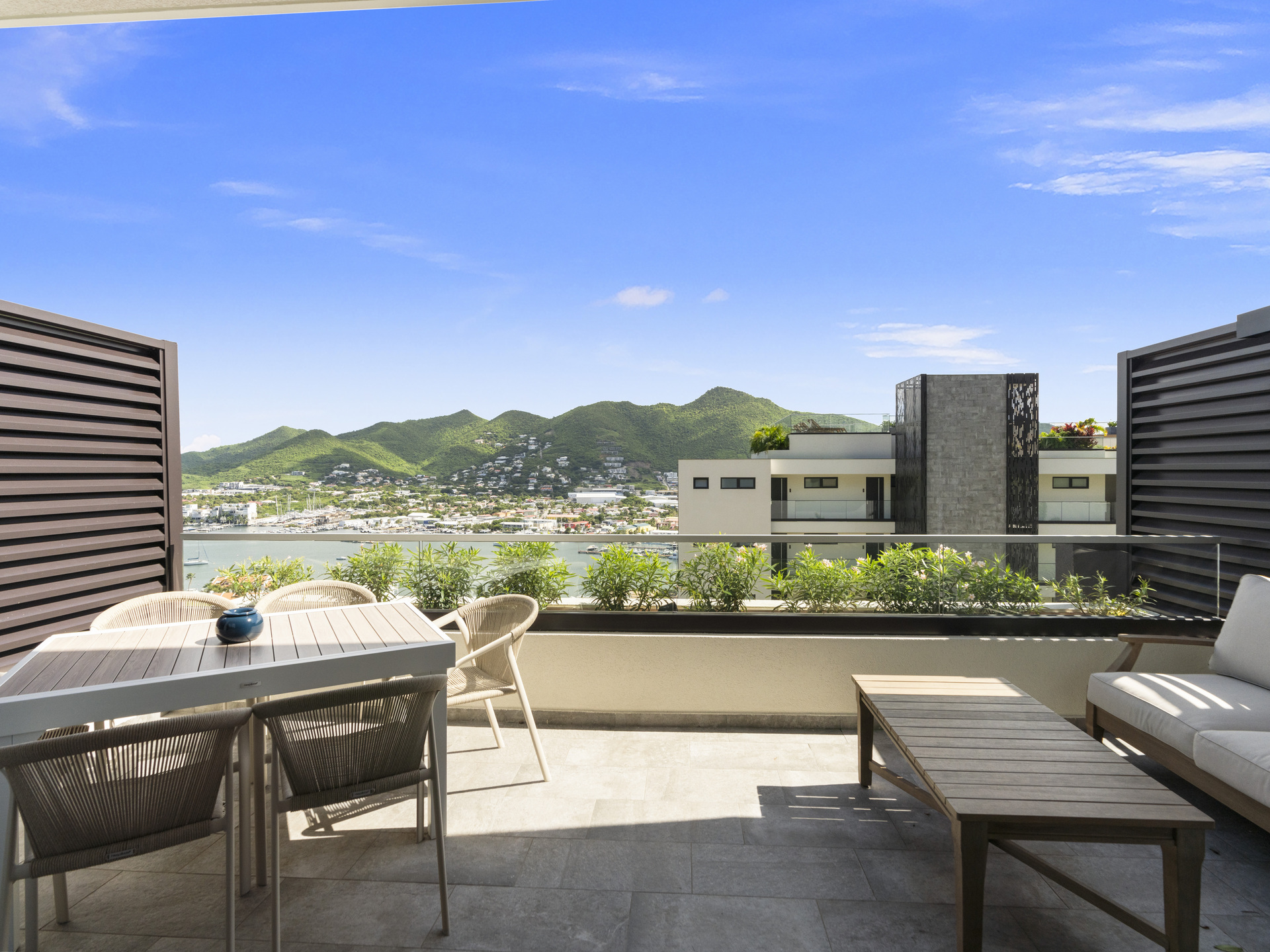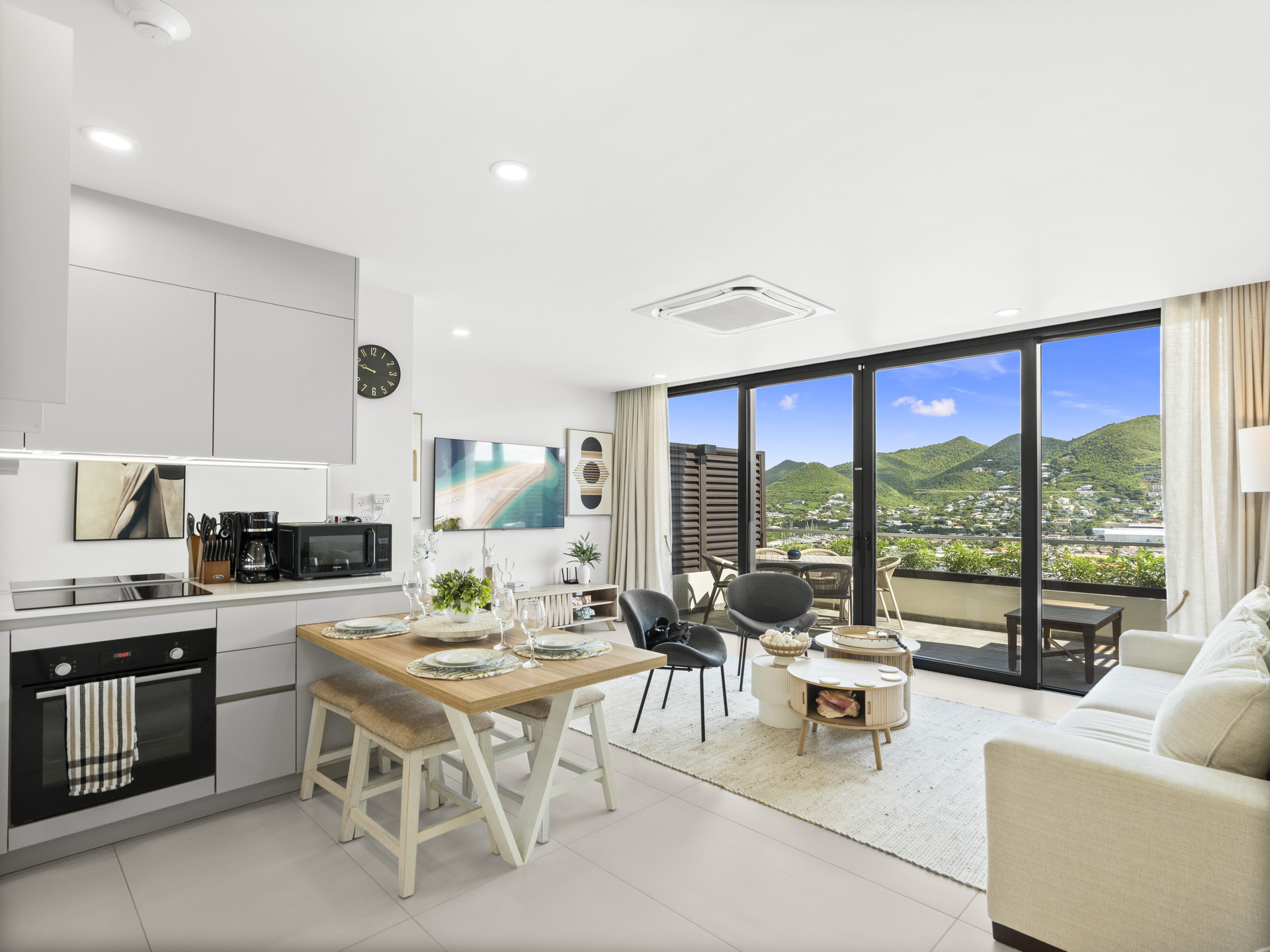 Guests at The Hills Residence enjoy secure parking, 24/7 security, and access to the rooftop pool on Level 5, where panoramic views of the lagoon, ocean, and surrounding hills create a breathtaking backdrop. From D408, you’re just minutes away from Simpson Bay’s best beaches, restaurants, nightlife, and shopping.