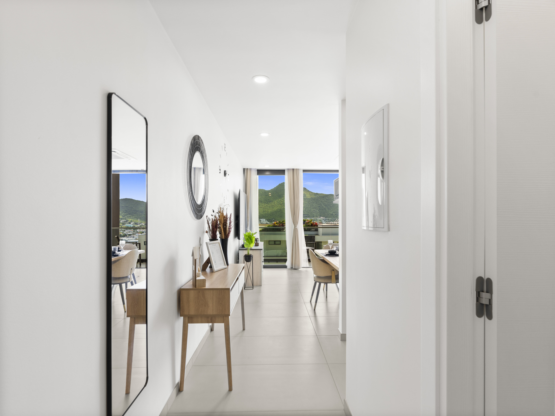 Residents and guests of The Hills Residence enjoy two levels of secure parking, 24/7 security, and access to the rooftop pool and jacuzzi on Level 5, where panoramic views of the lagoon and Simpson Bay create the perfect backdrop for relaxation.