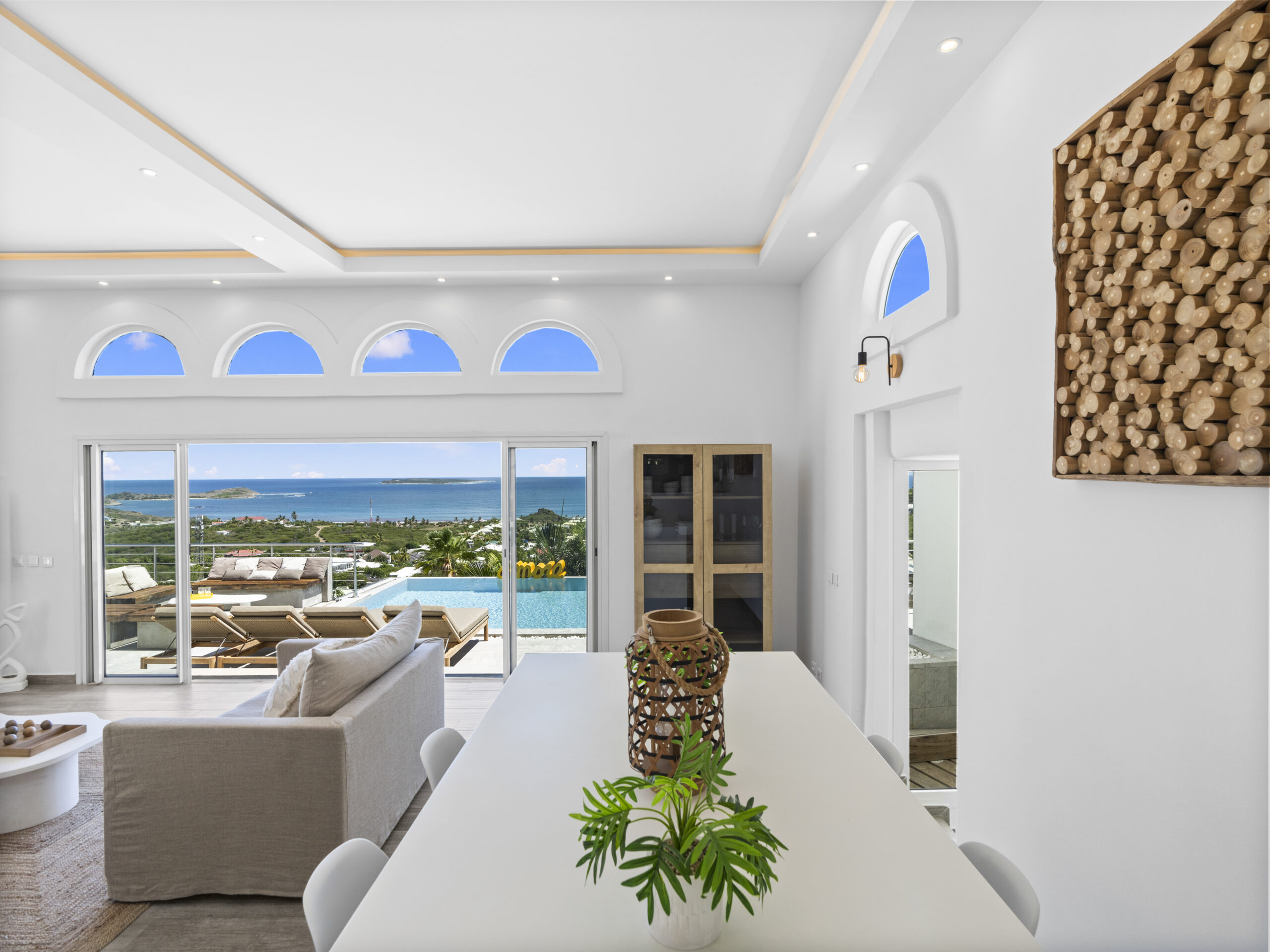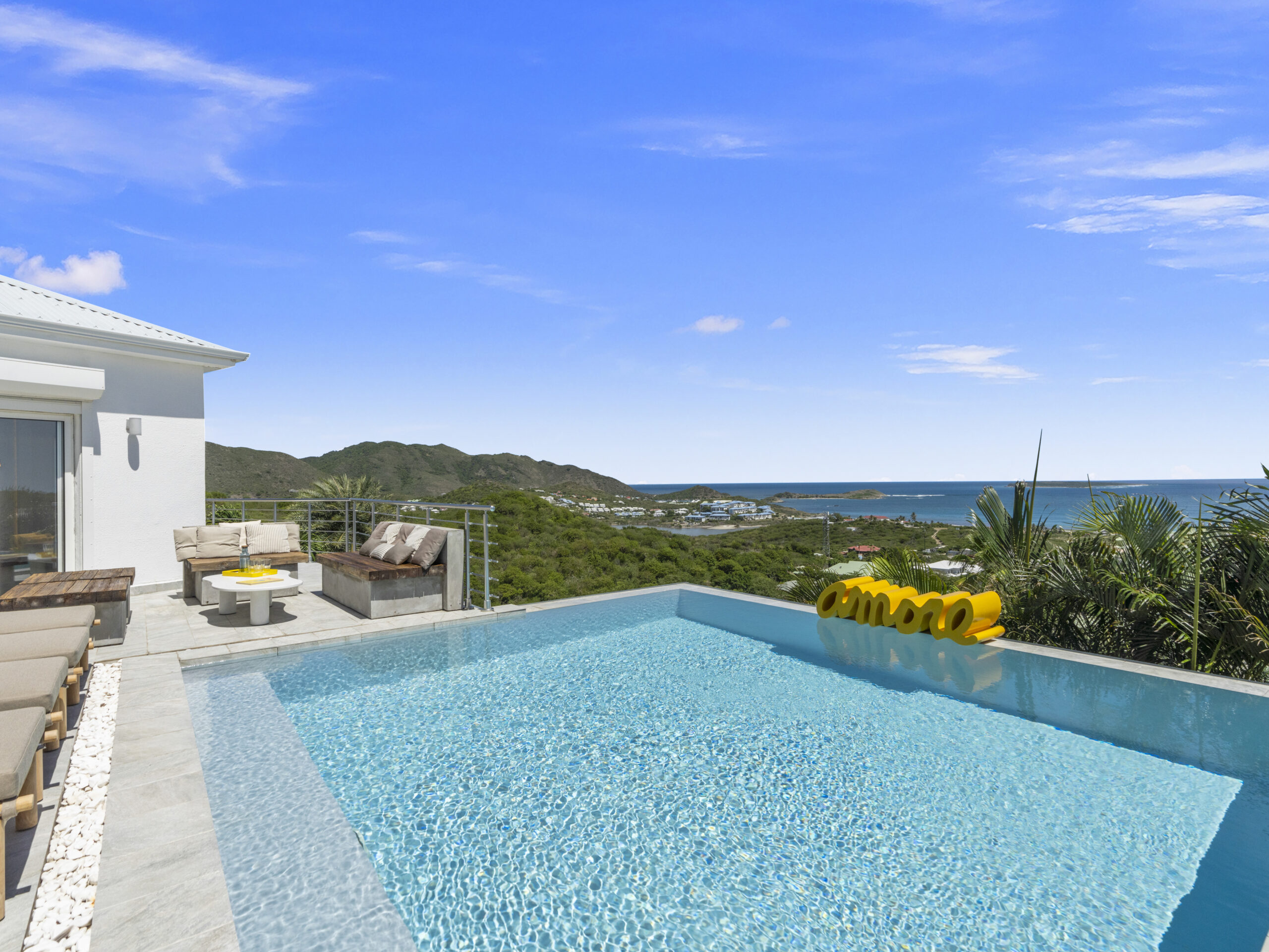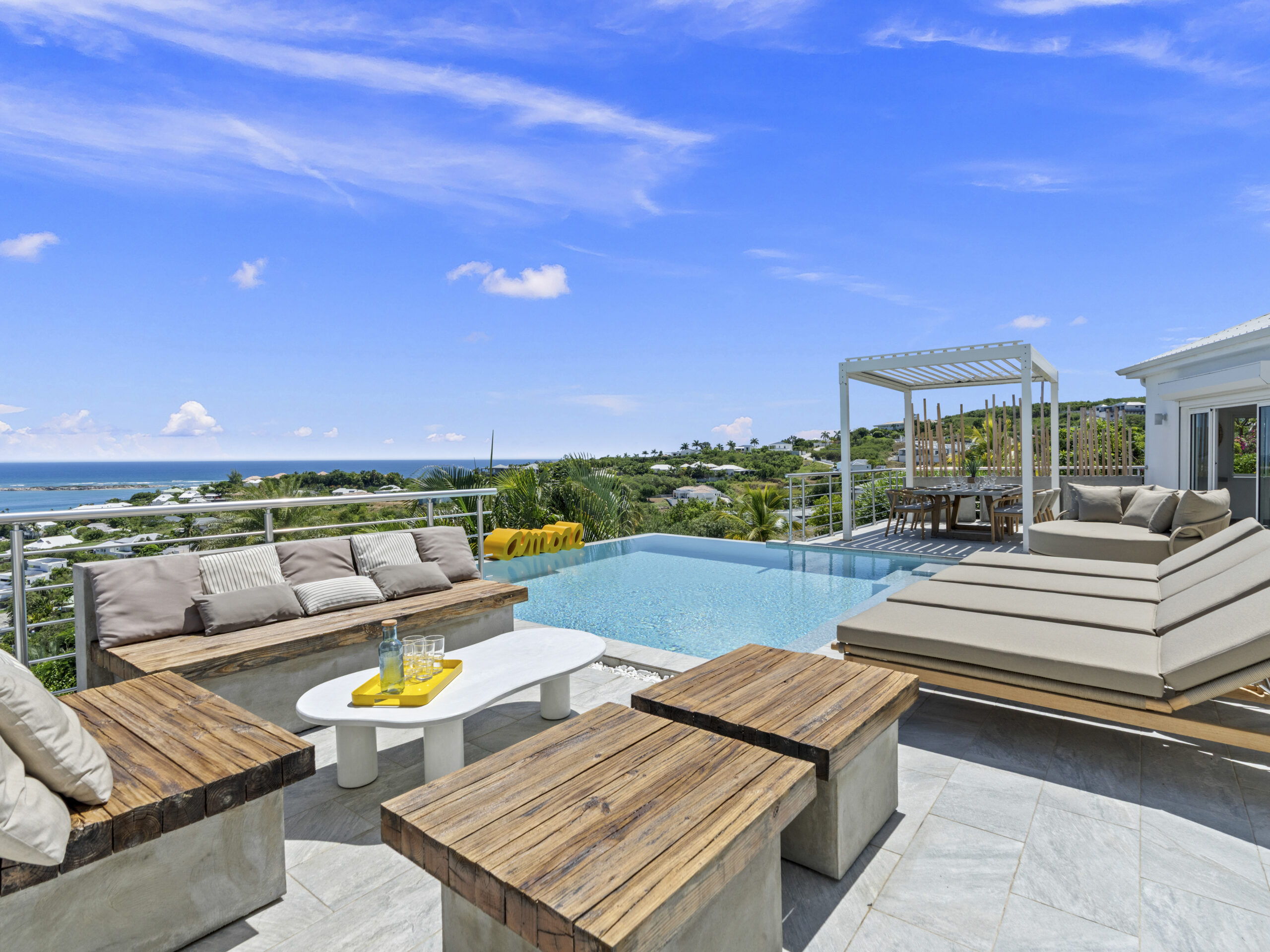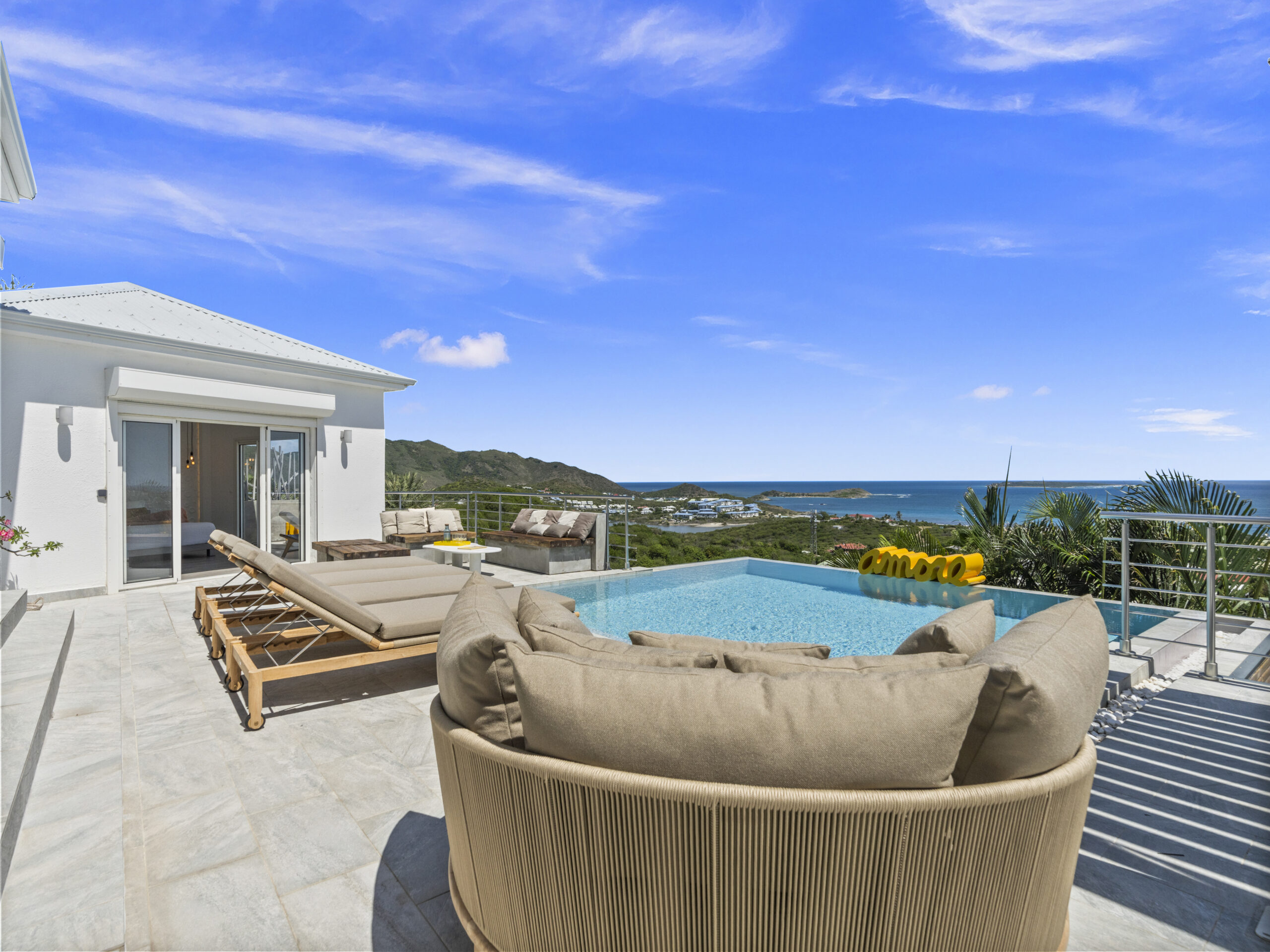 Situated at the top of the hill, this luxurious villa provides a panoramic spectacular view of Orient Beach. Imagine waking up to vibrant sunrises over the turquoise waters or sipping a glass of wine on the terrace as the sun sets over the horizon. This breathtaking scenery sets the tone for a truly serene and memorable stay.