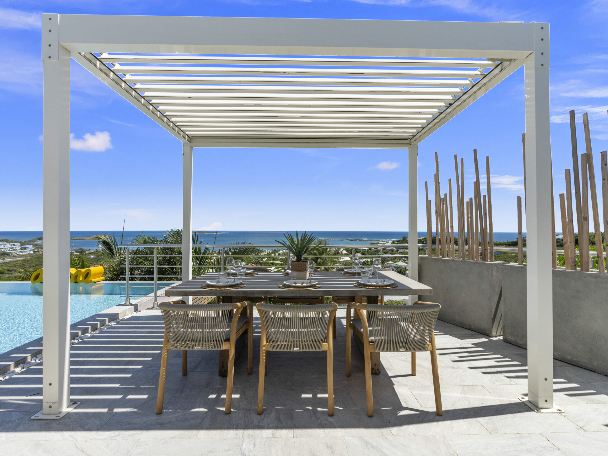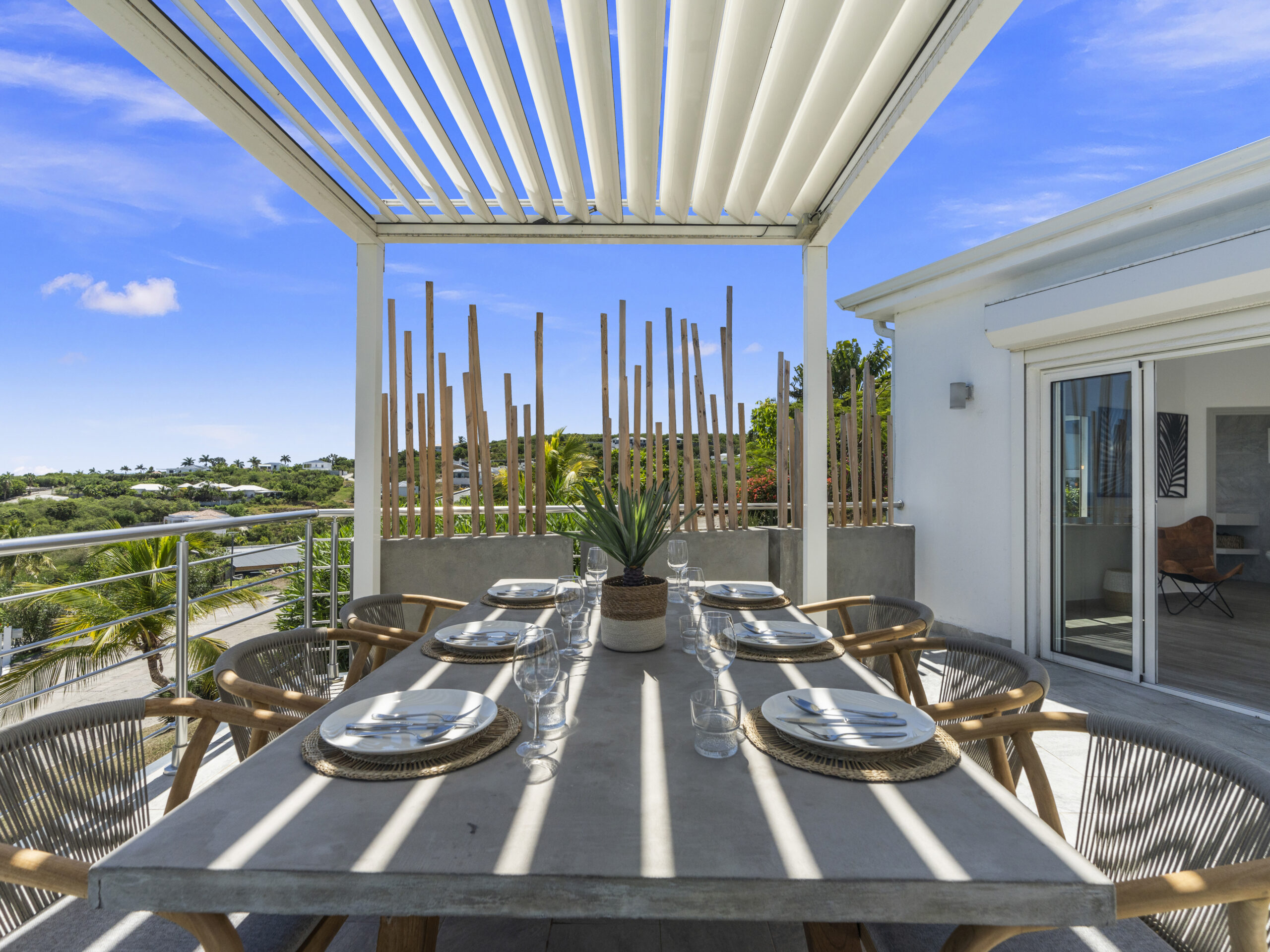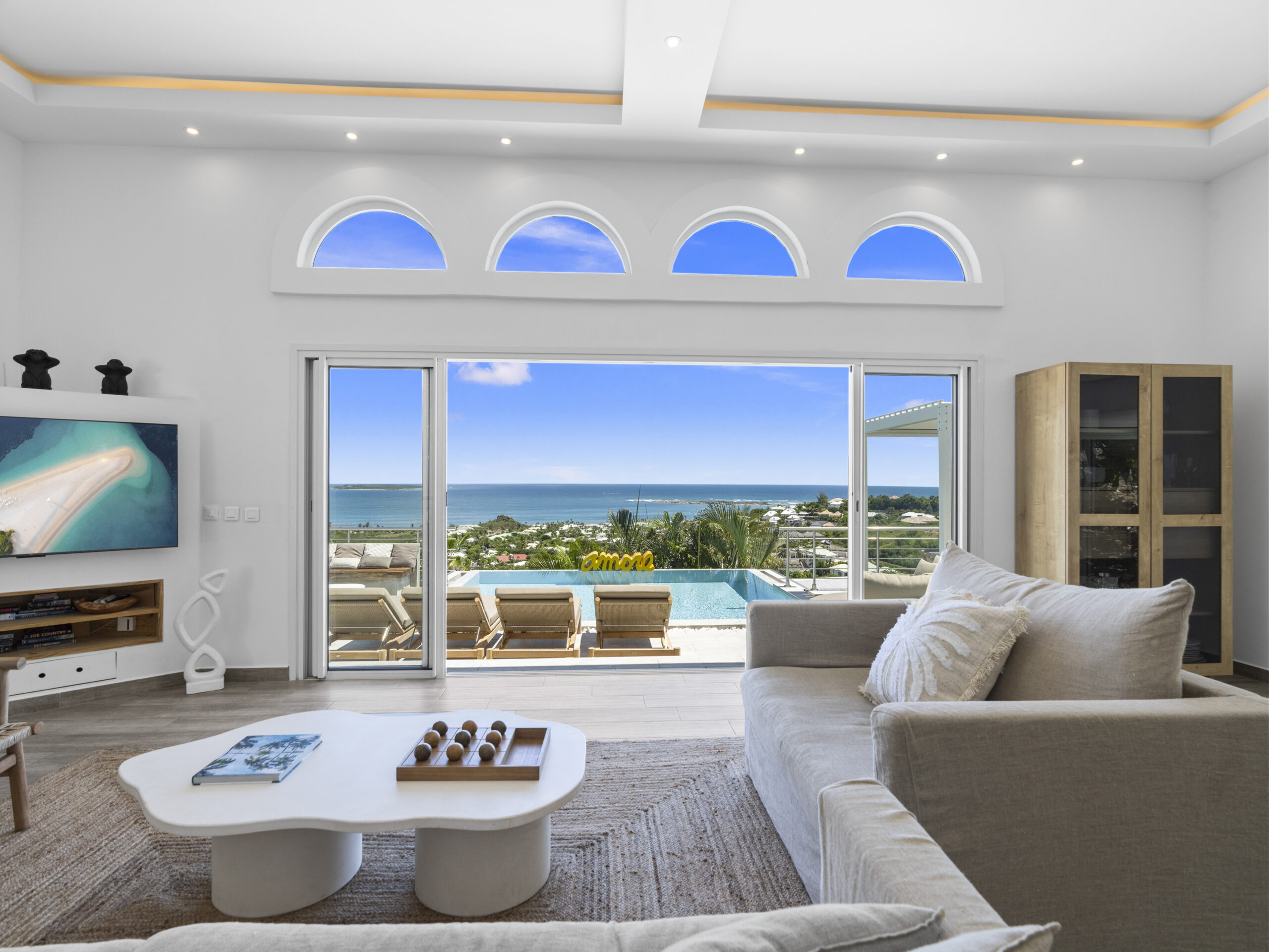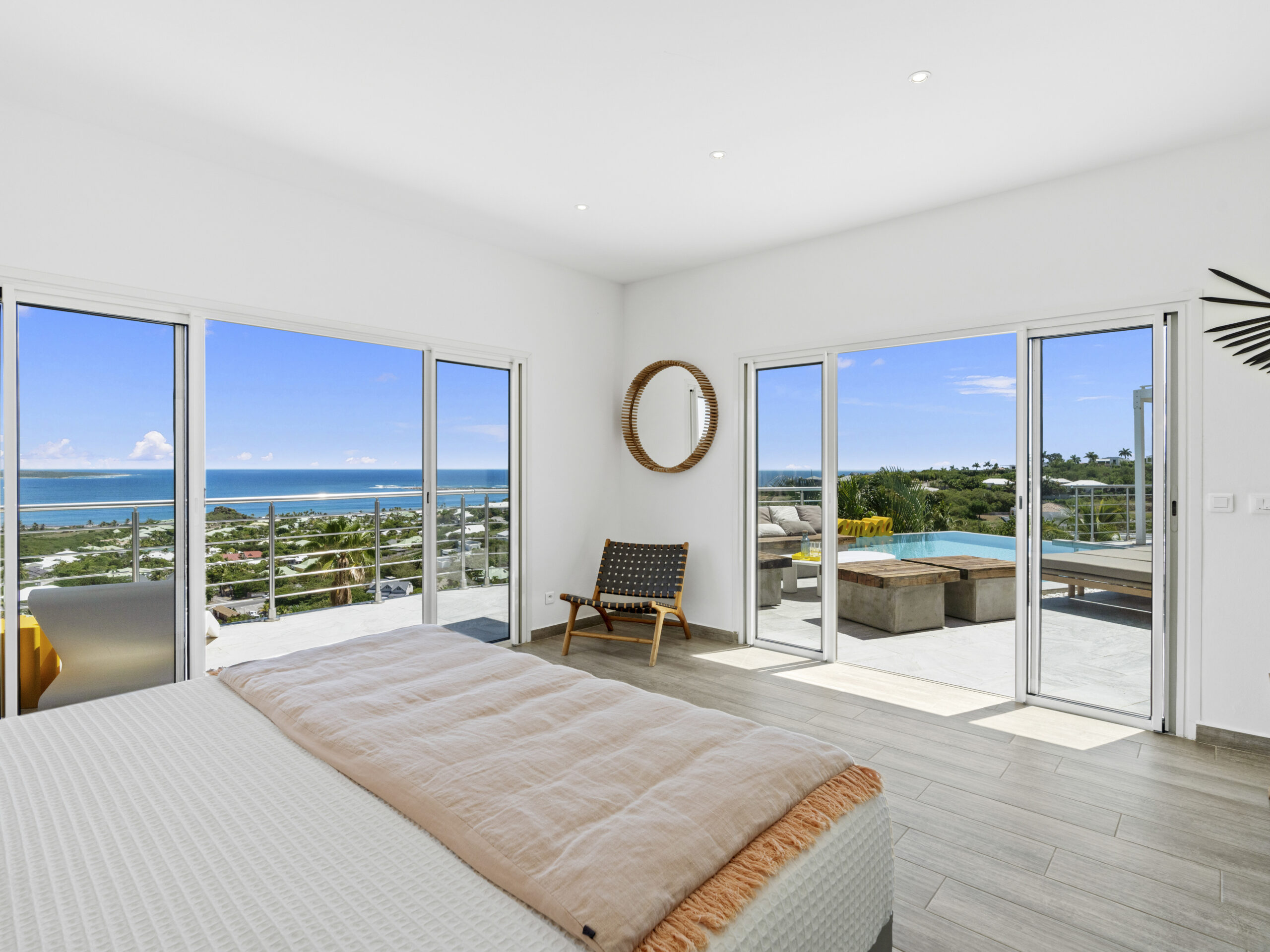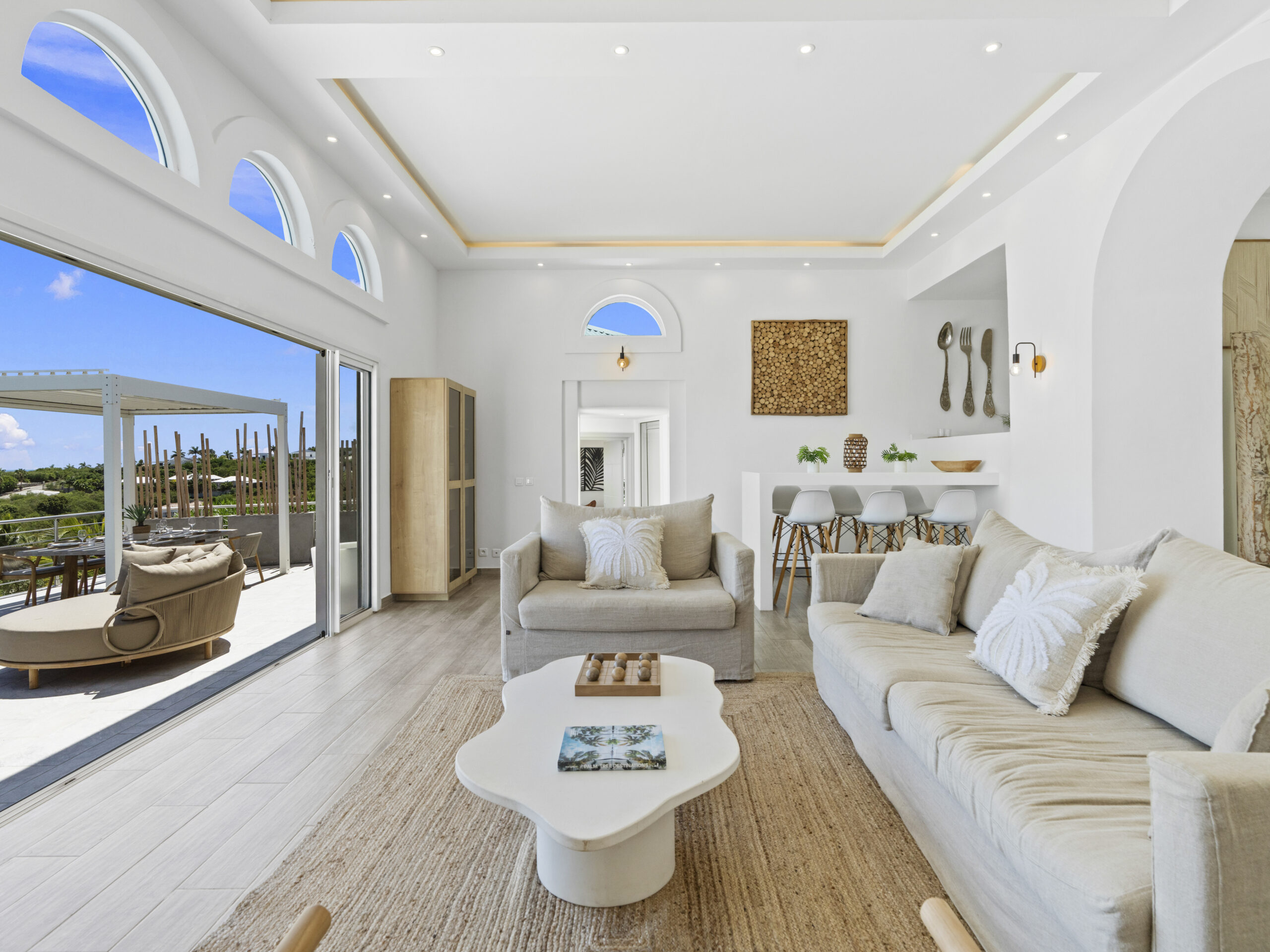 Situated at the top of the hill, this luxurious villa provides a panoramic spectacular view of Orient Beach. Imagine waking up to vibrant sunrises over the turquoise waters or sipping a glass of wine on the terrace as the sun sets over the horizon. This breathtaking scenery sets the tone for a truly serene and memorable stay.