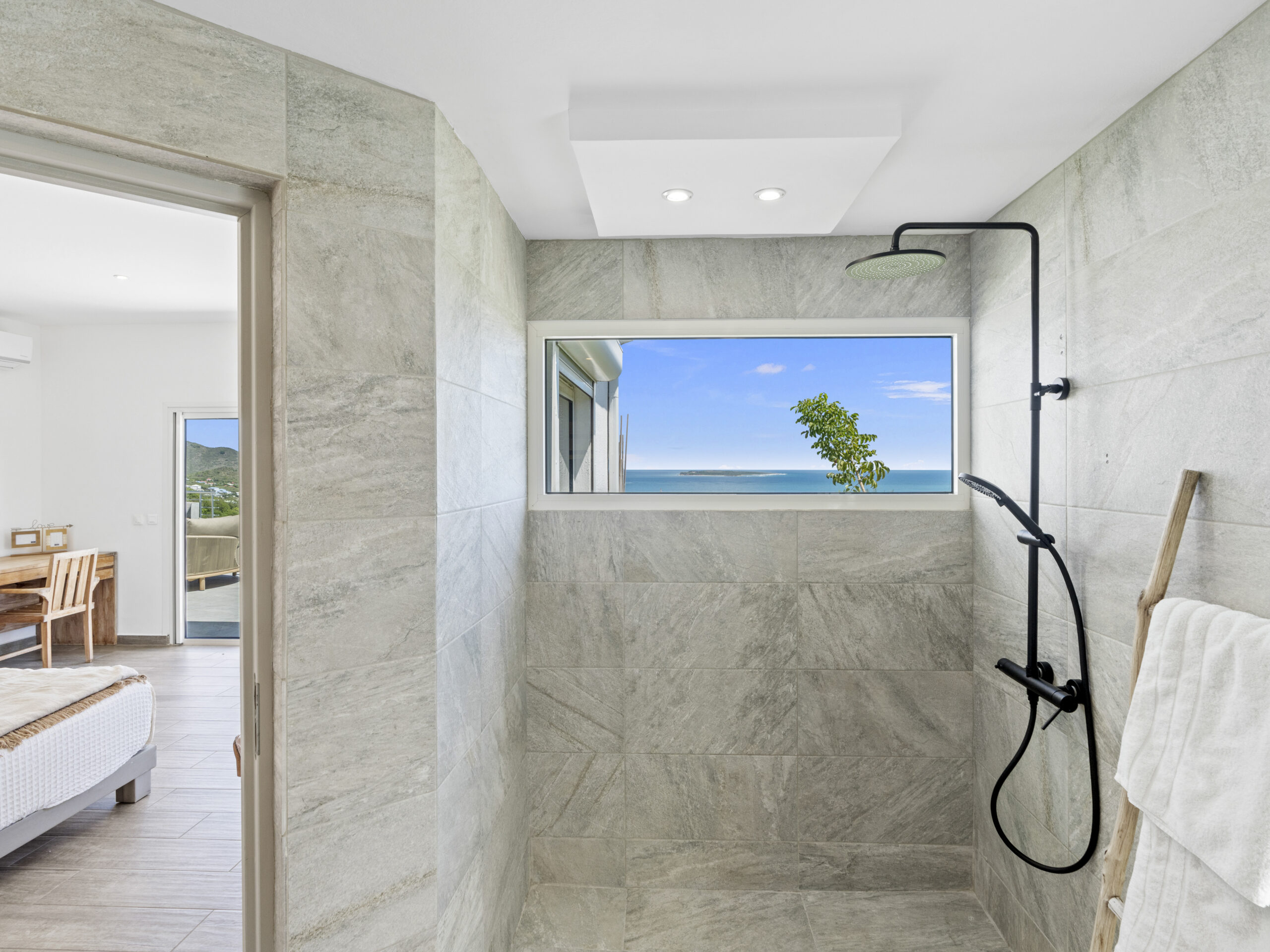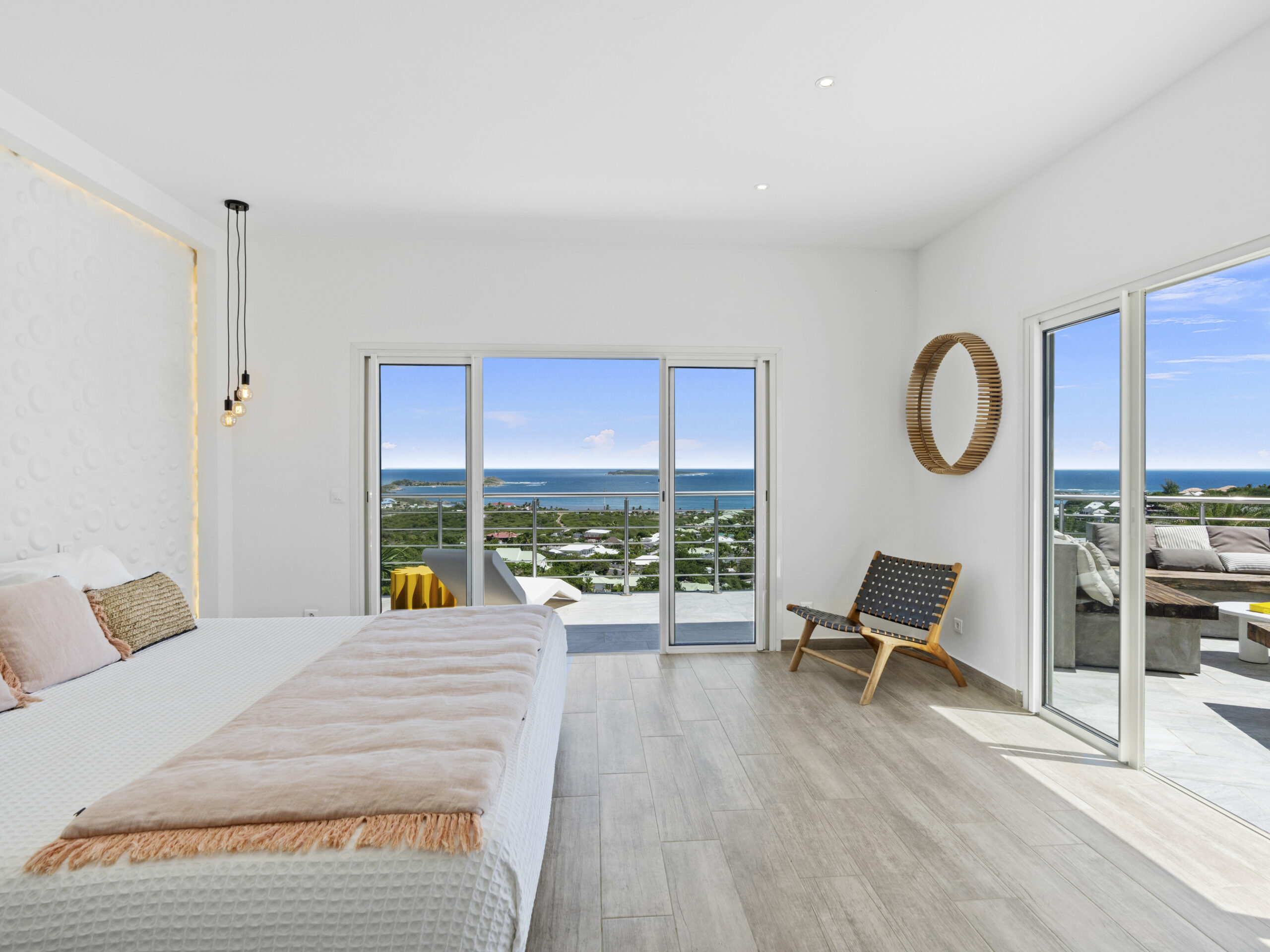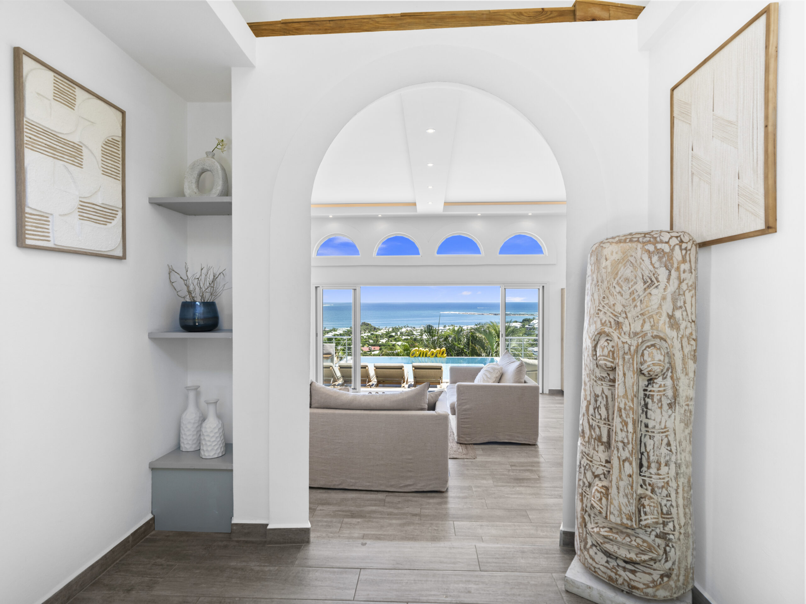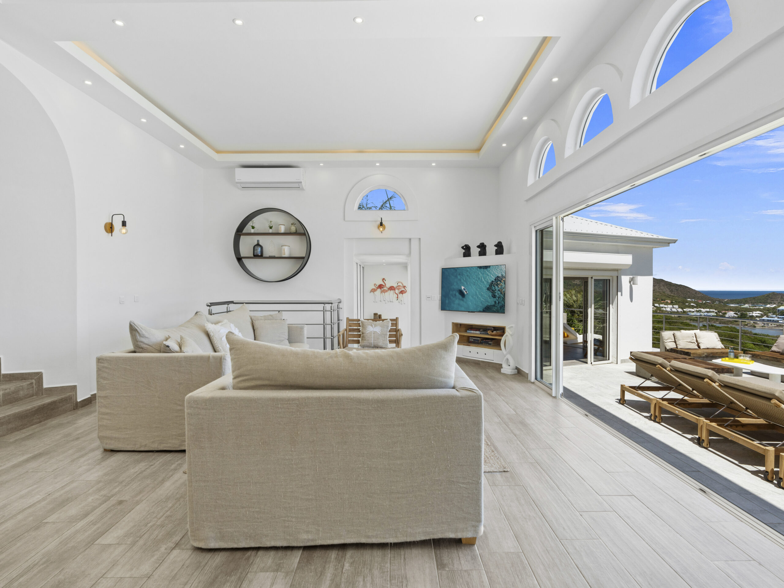 Situated at the top of the hill, this luxurious villa provides a panoramic spectacular view of Orient Beach. Imagine waking up to vibrant sunrises over the turquoise waters or sipping a glass of wine on the terrace as the sun sets over the horizon. This breathtaking scenery sets the tone for a truly serene and memorable stay.
