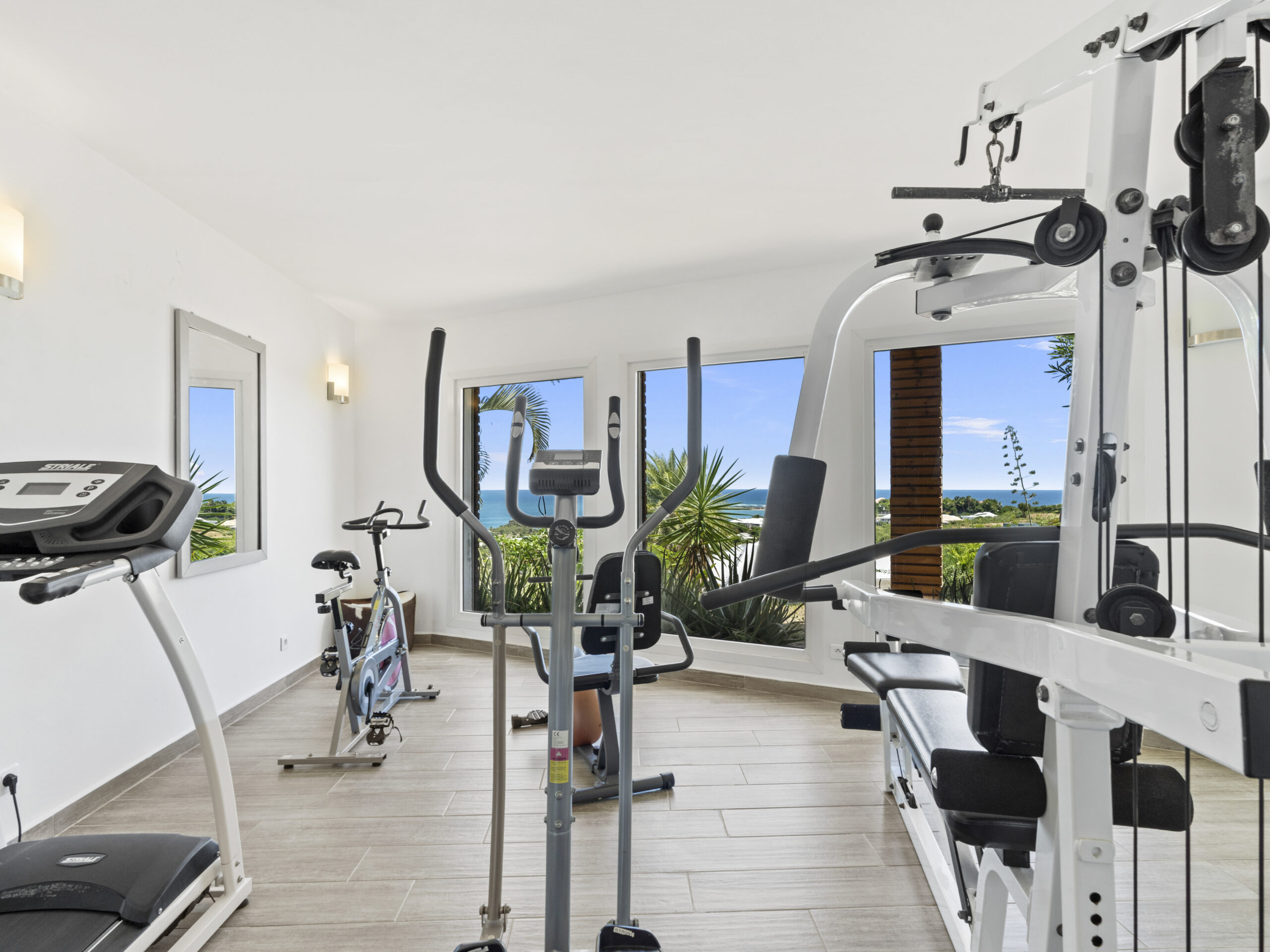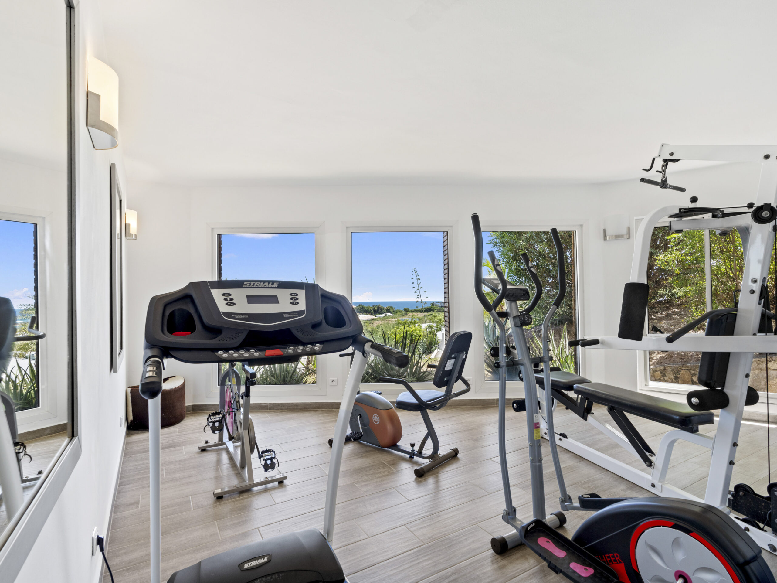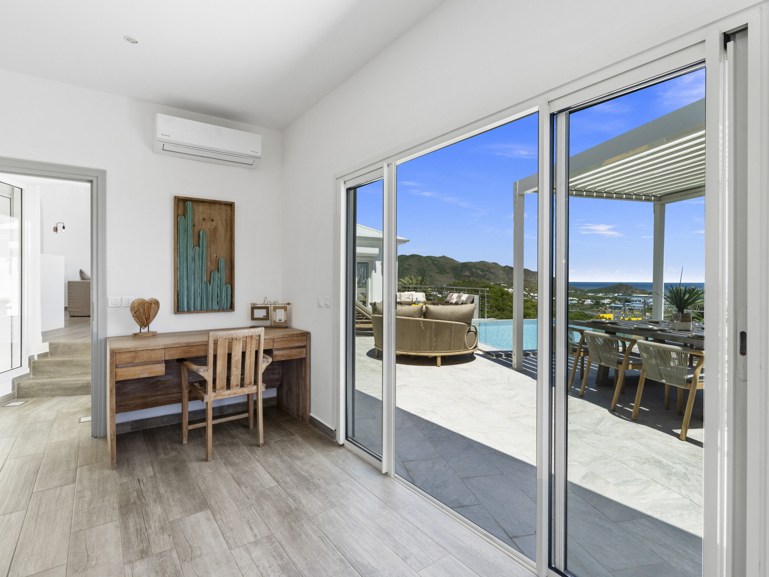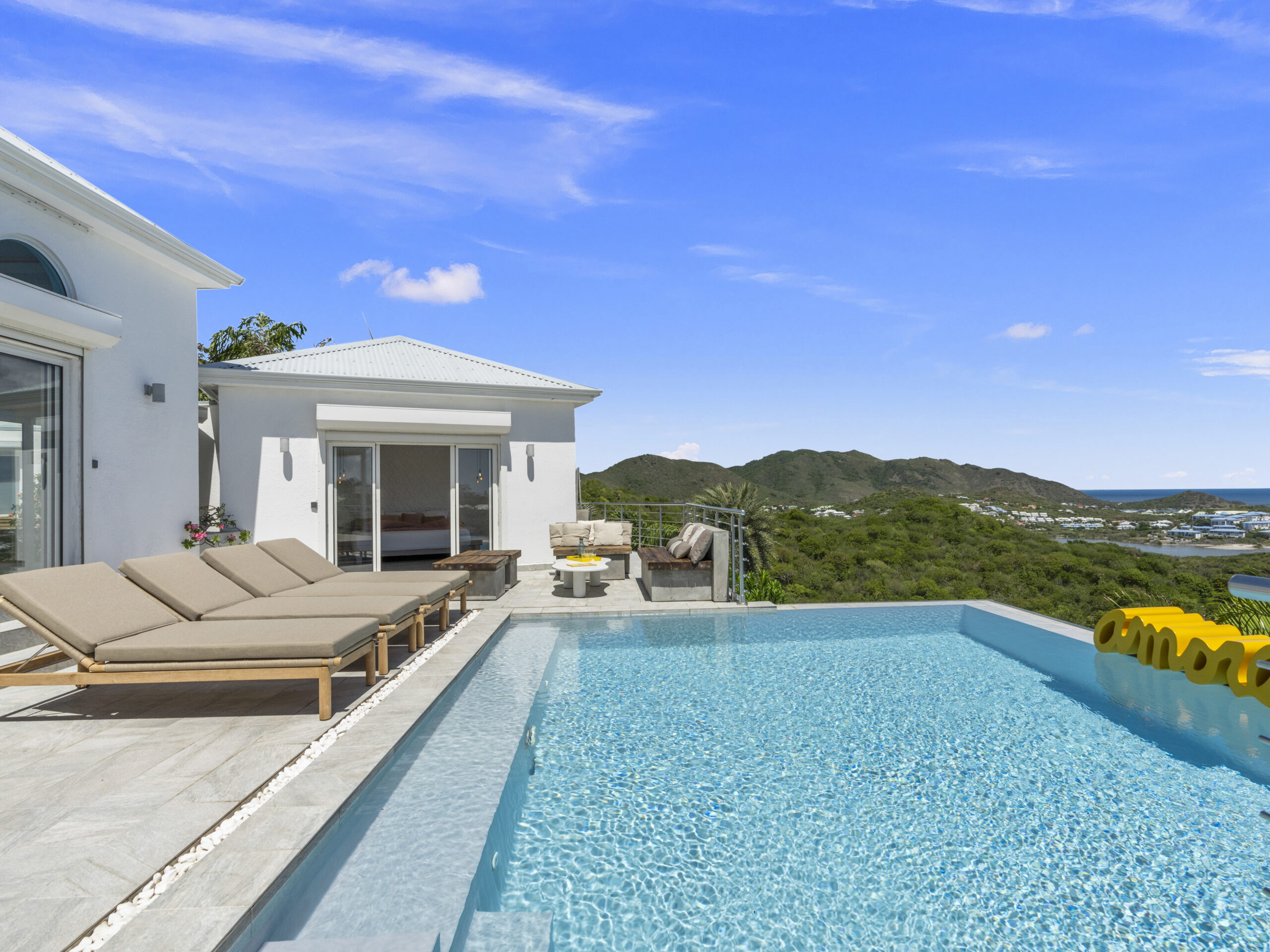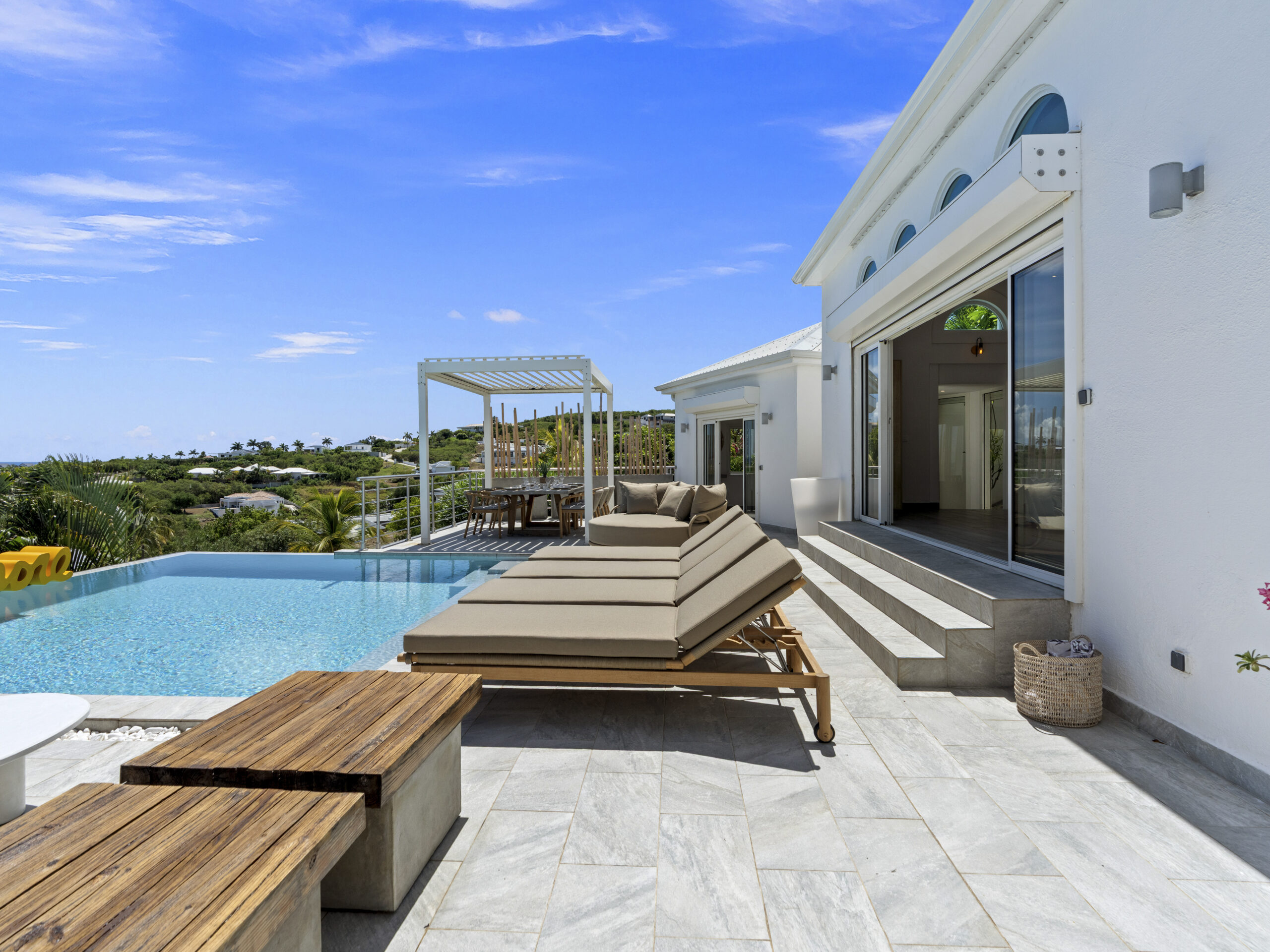 For those who value staying active, the villa includes a private sport room, providing a space for exercise and wellness at your own pace. Afterward, cool off in the villa’s luxurious private pool, where you can bask in the tropical sun or take in the truly incredible view of Orient Beach below.