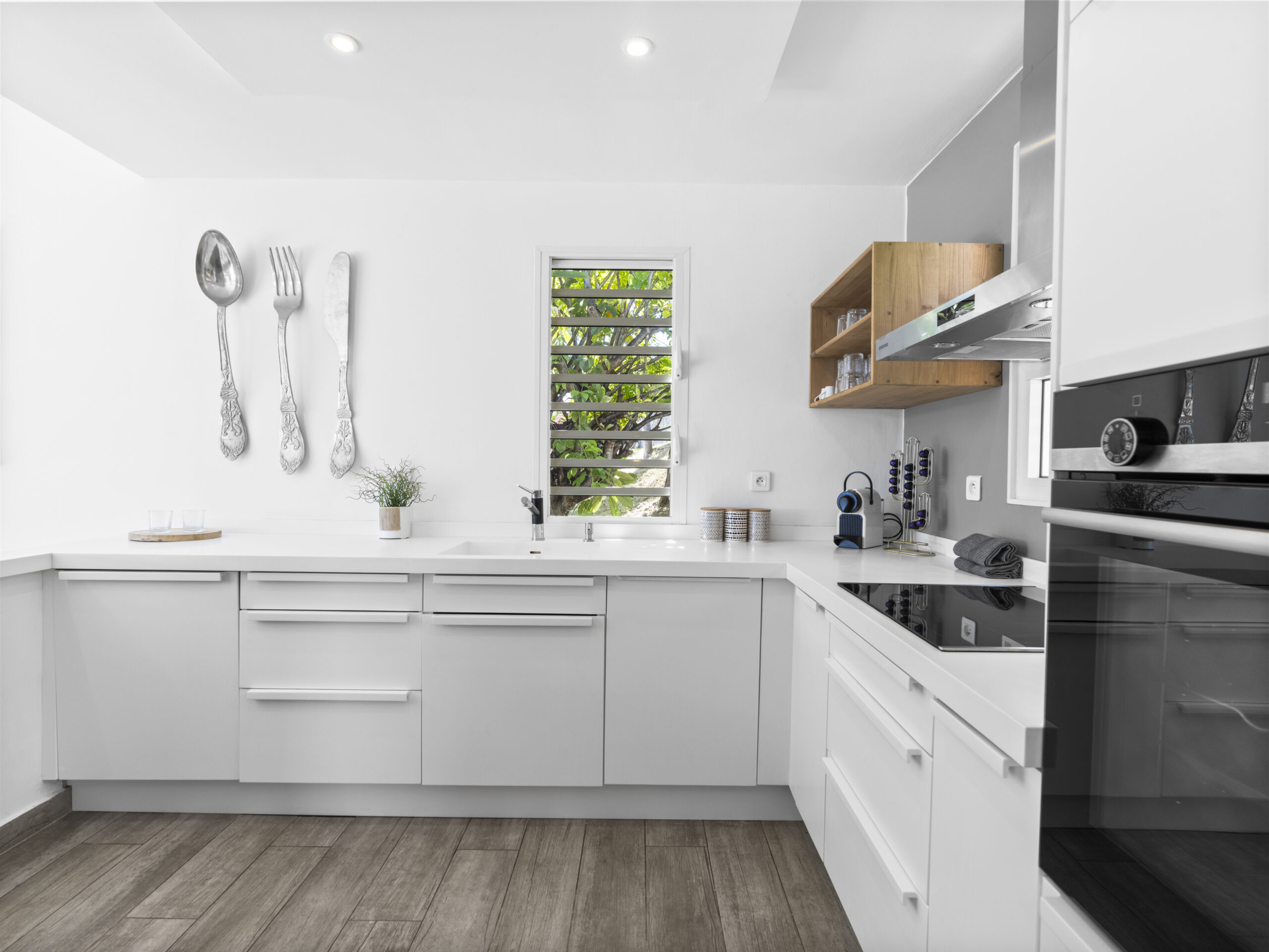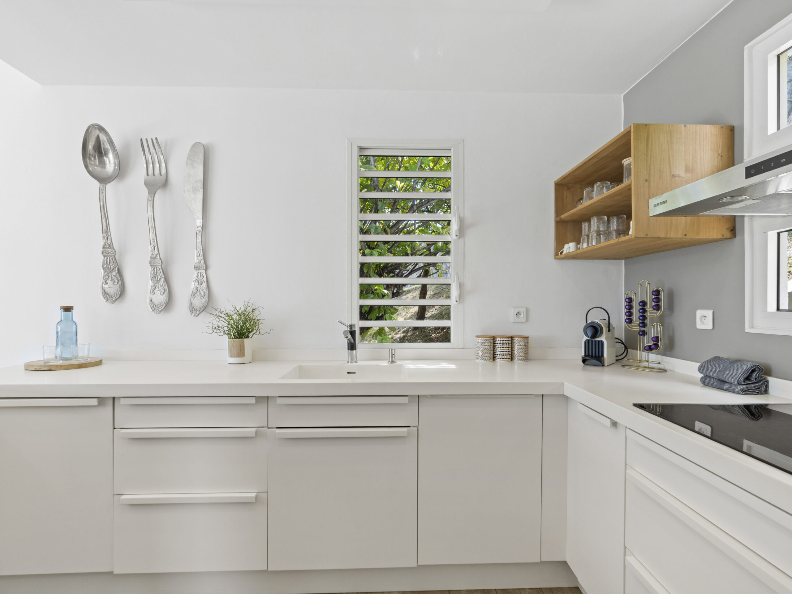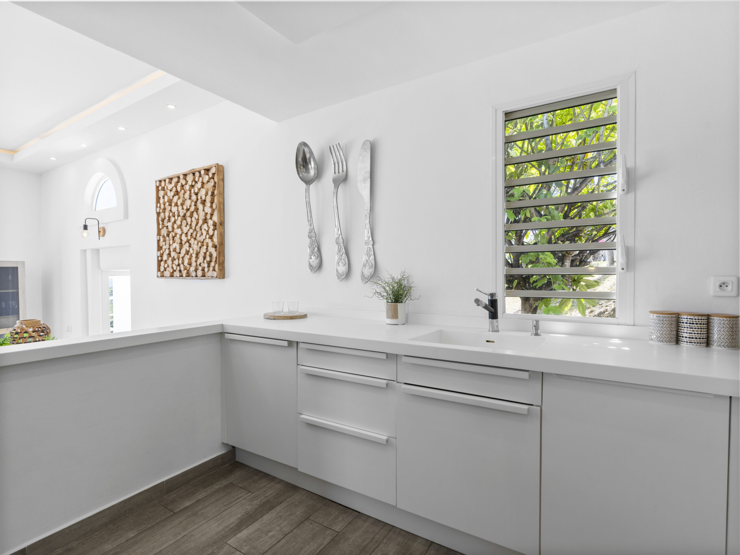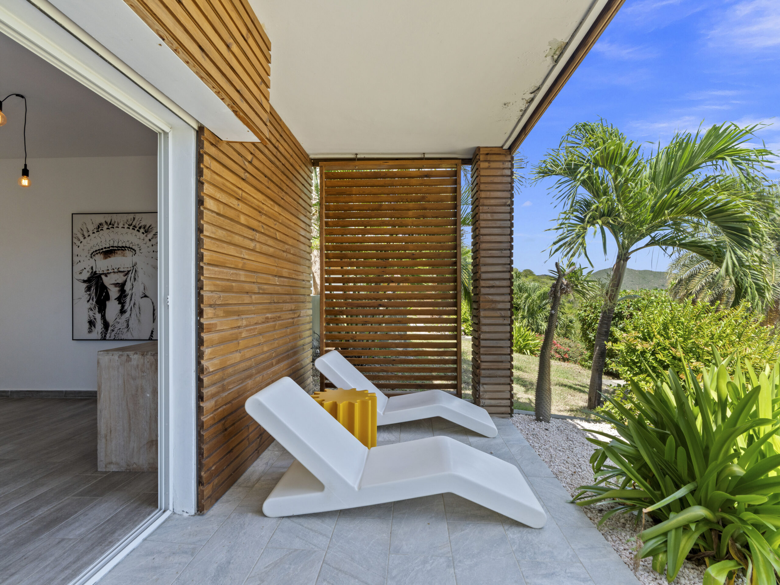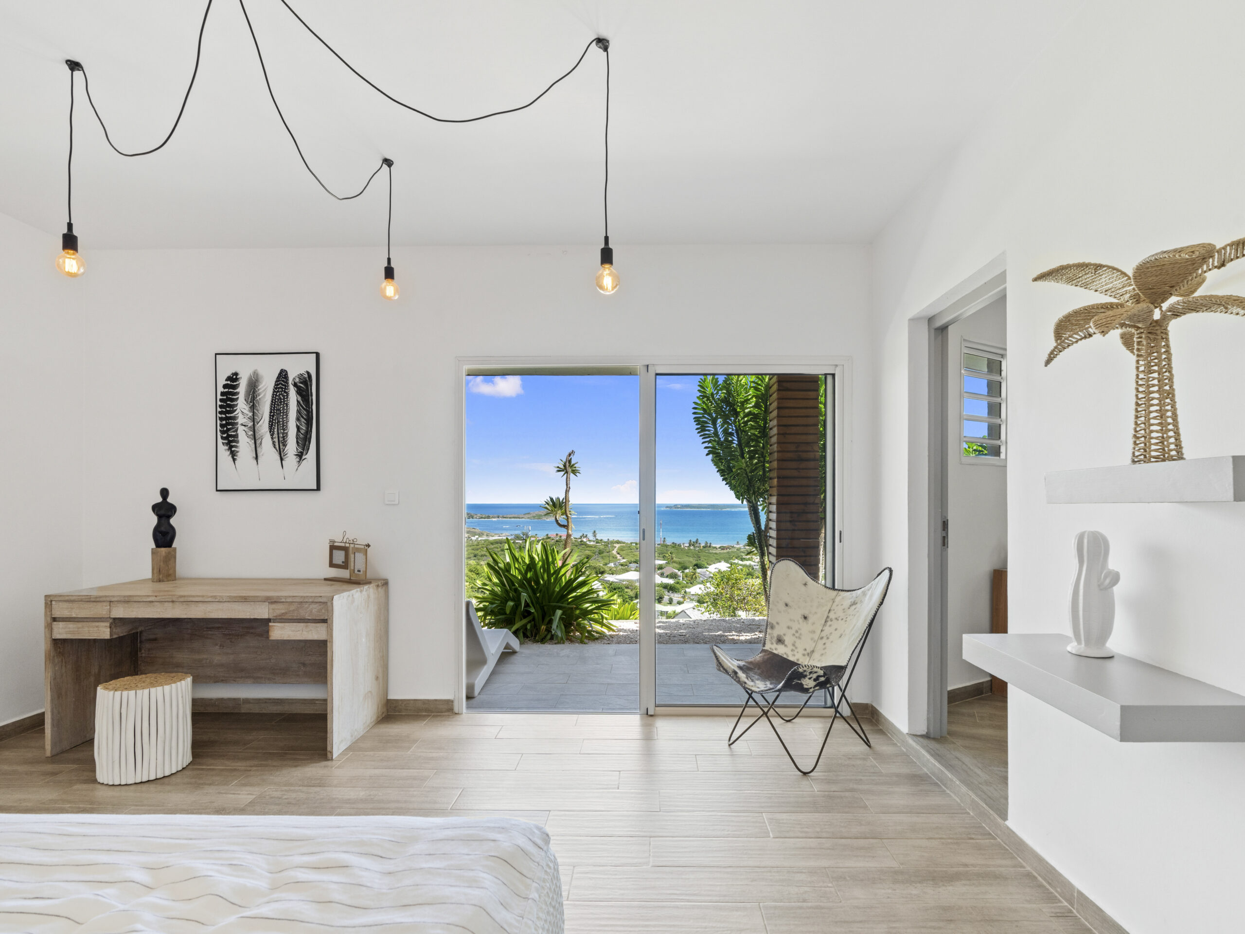 For those who value staying active, the villa includes a private sport room, providing a space for exercise and wellness at your own pace. Afterward, cool off in the villa’s luxurious private pool, where you can bask in the tropical sun or take in the truly incredible view of Orient Beach below.