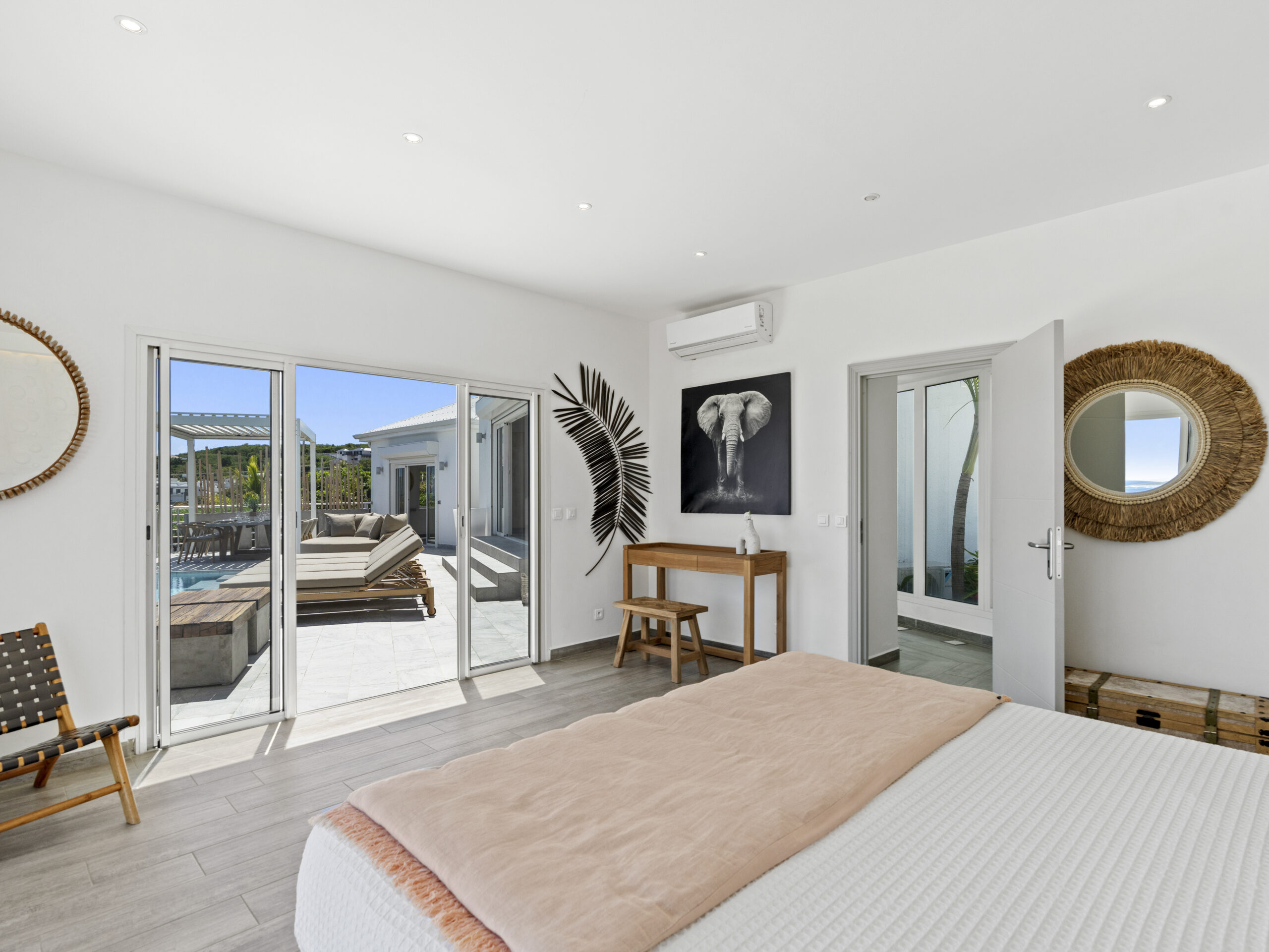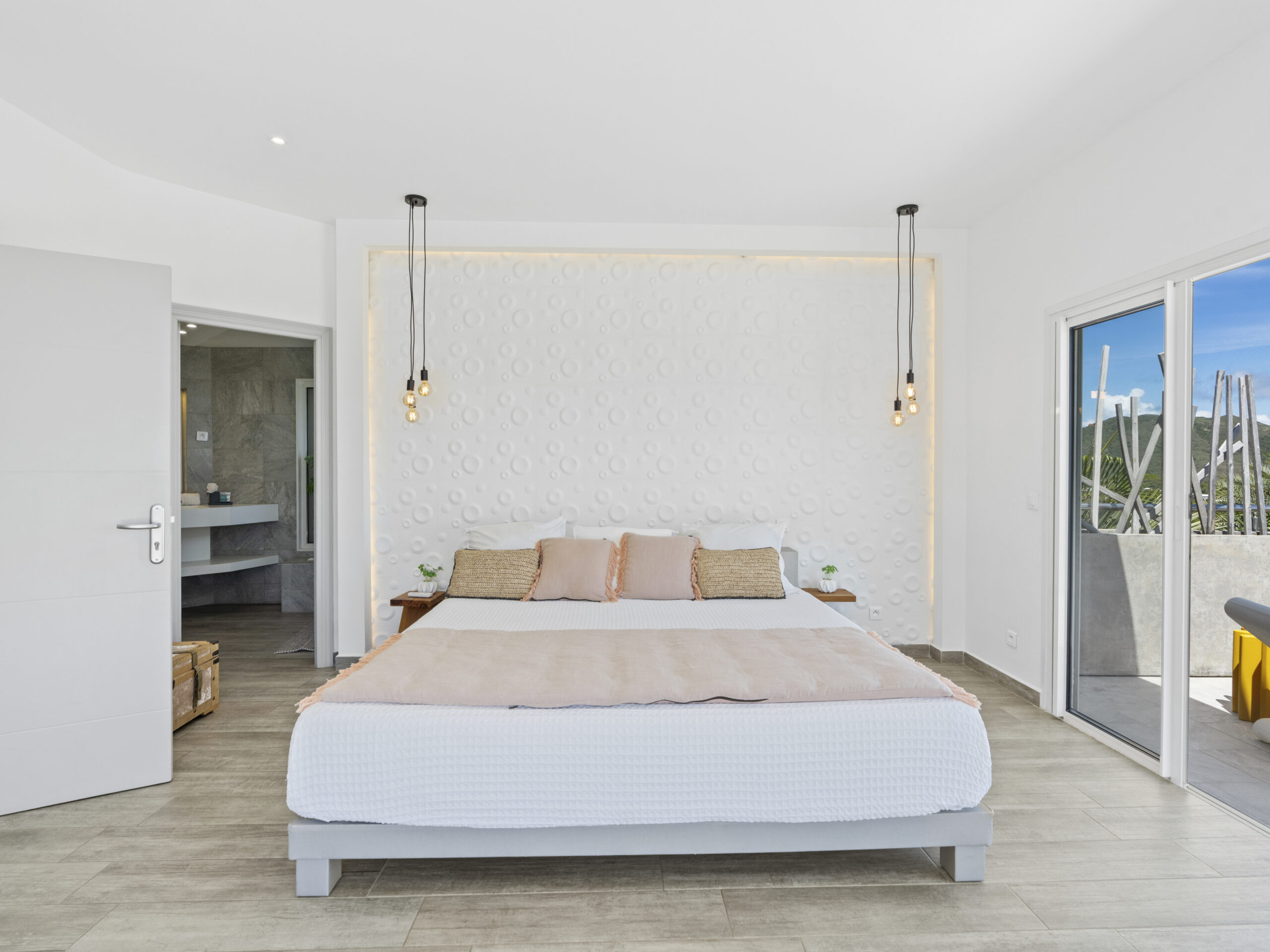 Step into Villa Topaze and discover a world of style and sophistication. Each of the three bedrooms is a private sanctuary, featuring its own ensuite bathroom for added convenience and privacy. All bedrooms are outfitted with king-size beds, ensuring restful nights amidst the soothing sea breeze.