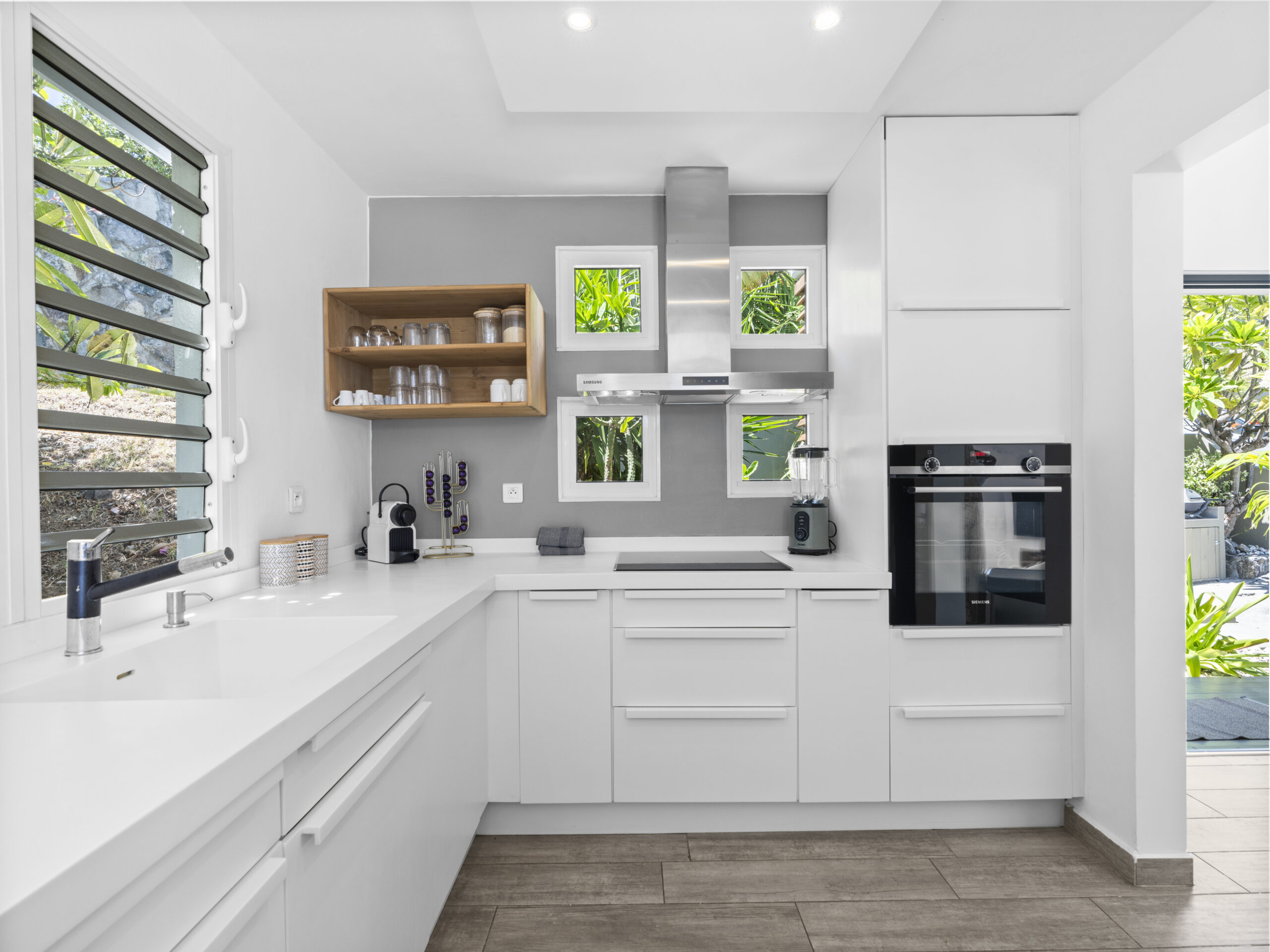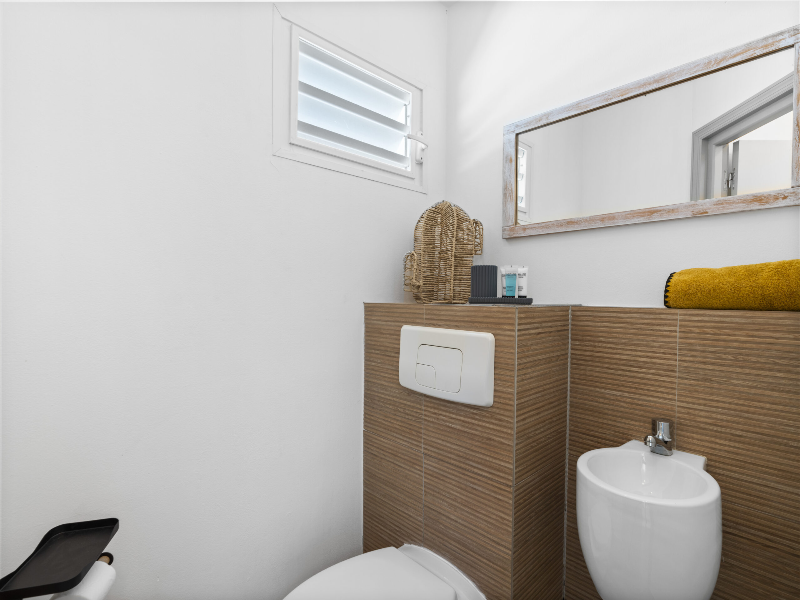 Villa Topaze is fully equipped with everything you need to enjoy meals and refreshments in the comfort of your retreat. The kitchen is stocked with modern amenities, including a kettle, coffee machine, Nespresso machine, toaster, and blender. Whether you’re whipping up a quick breakfast or preparing a sunset cocktail, you’ll have all the tools to do it in style. Enhance your days with an alfresco meal on the modern terrace, which features gorgeous pergolas and a barbecue grill for unforgettable outdoor evenings.