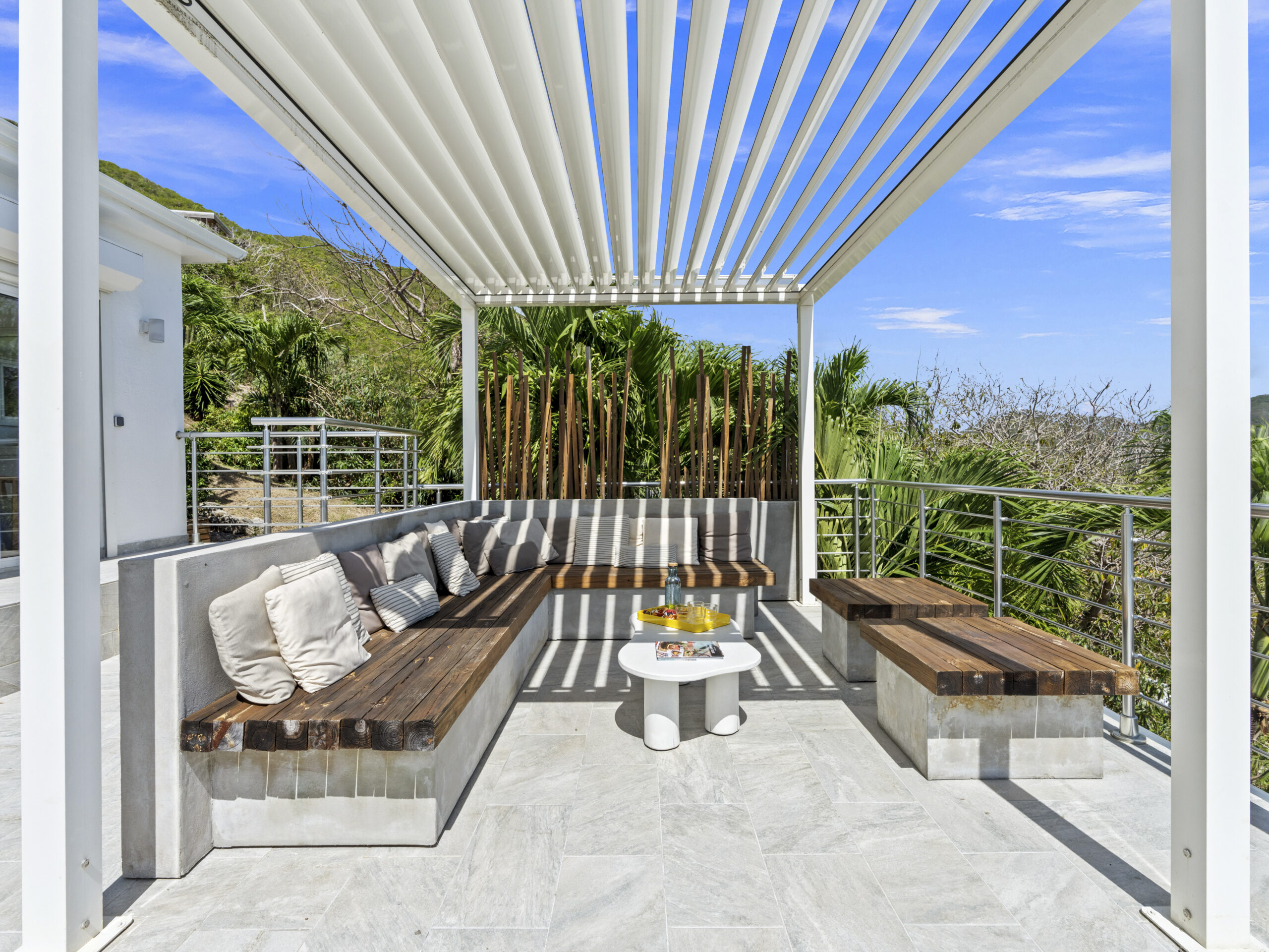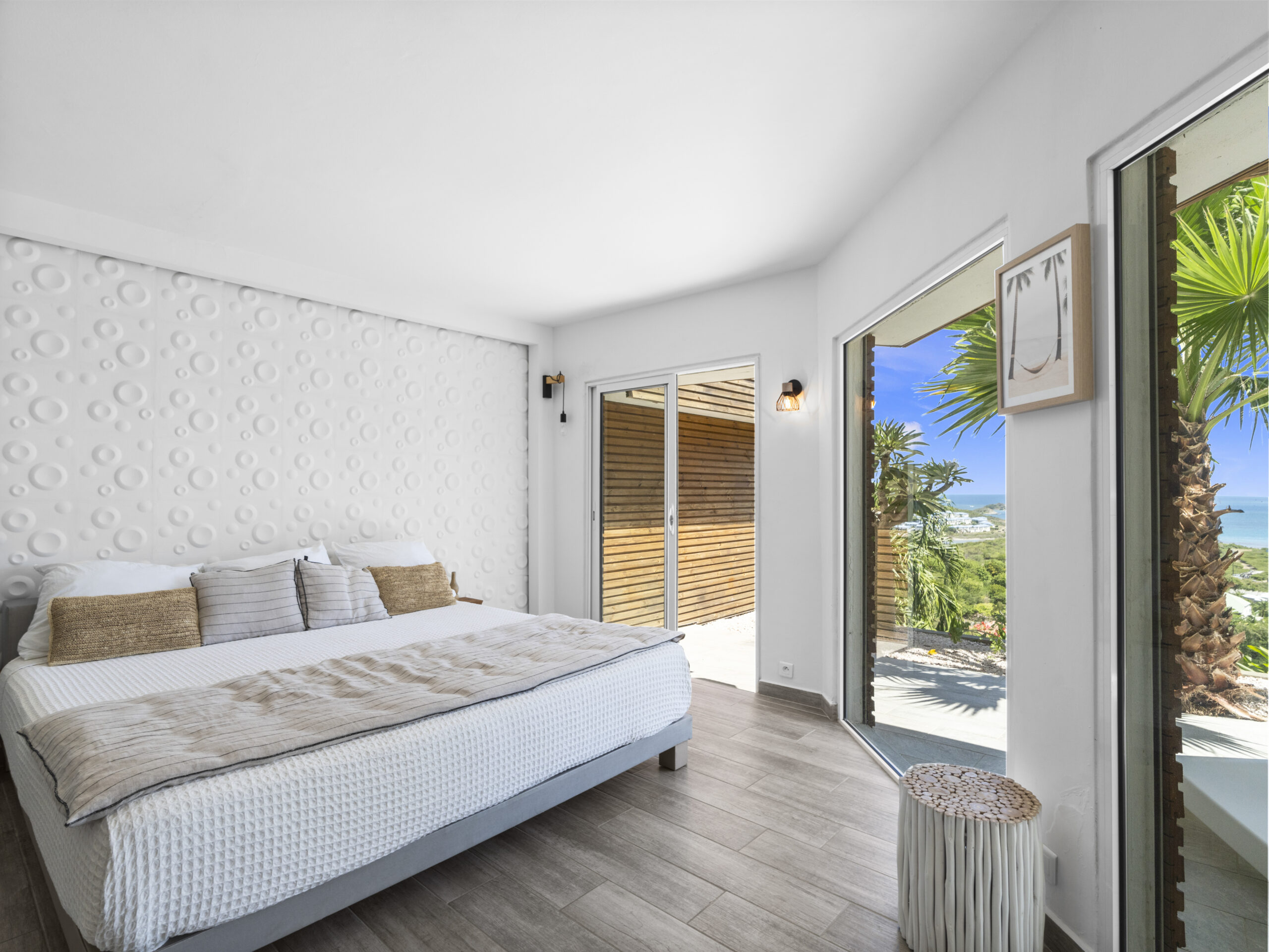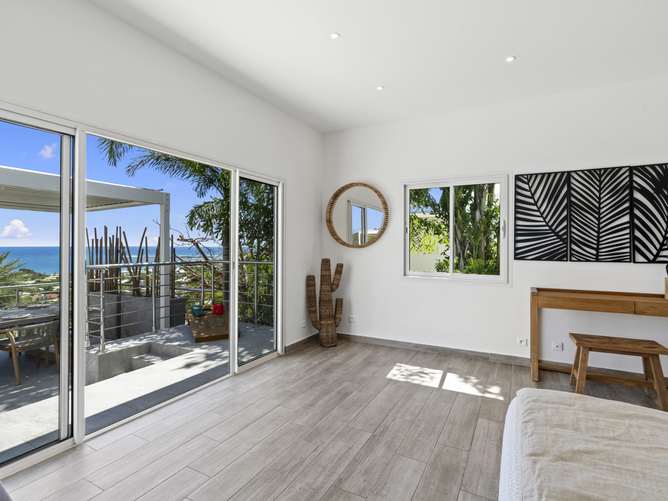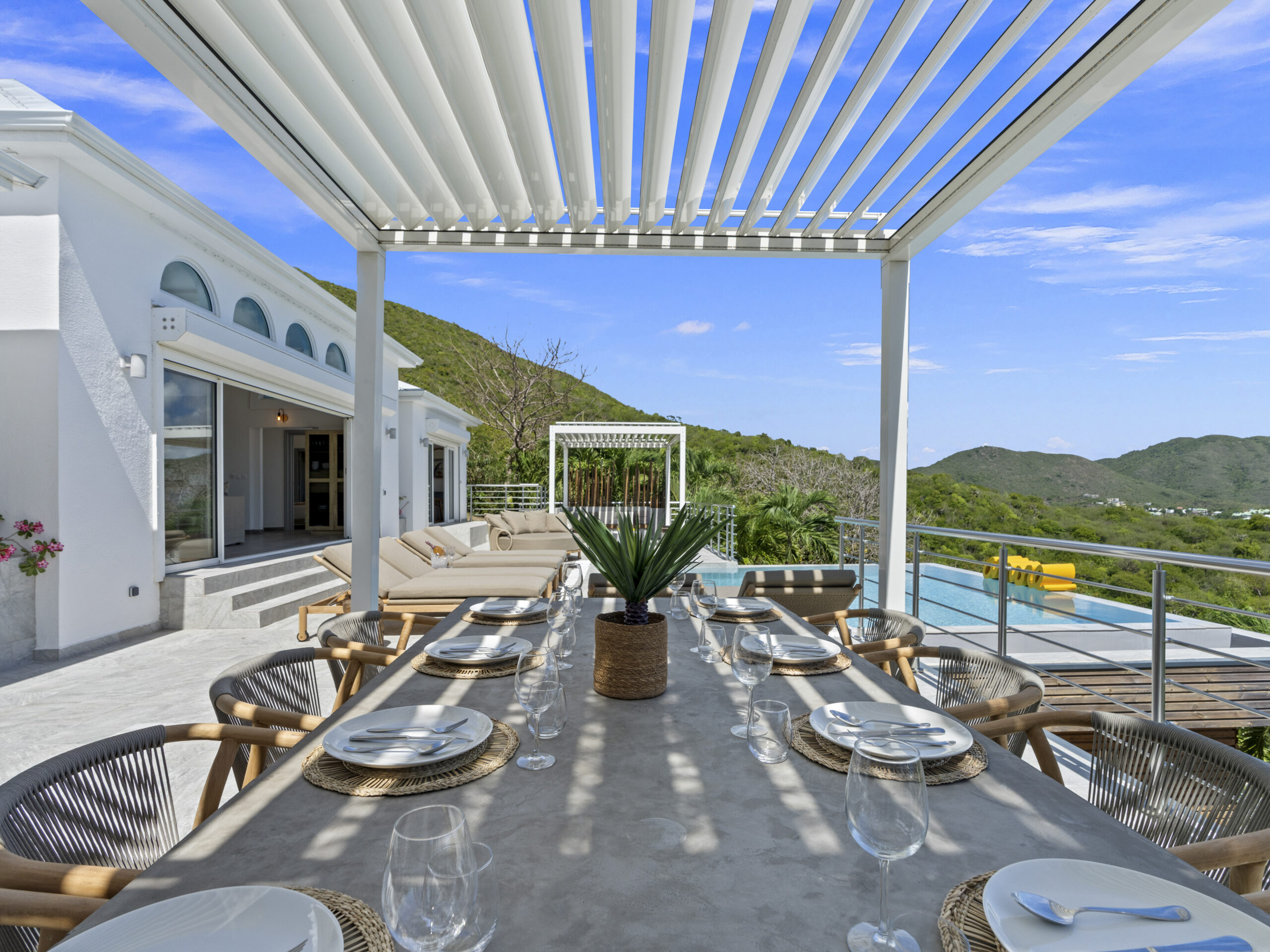 The villa also boasts a fully equipped private sports room, perfect for keeping up with your fitness routine while away. Afterward, unwind on the spectacular modern terrace, complete with pergolas, a barbecue, and breathtaking views of the Caribbean Sea.
