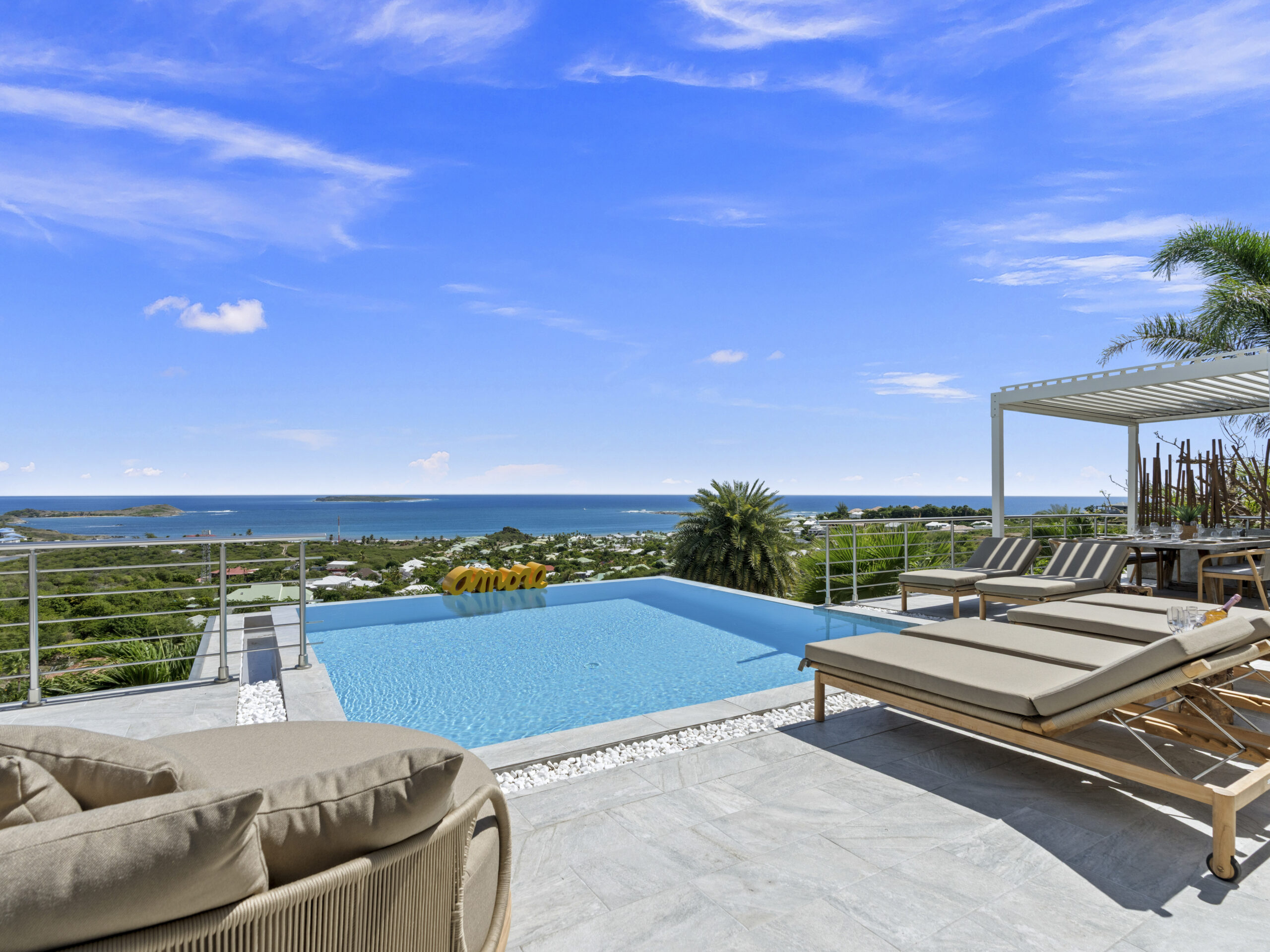 Experience the ultimate in luxury and comfort at Villa Turquoze, a stunning 4-bedroom vacation villa perched in an exclusive gated community overlooking the sparkling waters of Orient Beach. This upscale retreat seamlessly blends sophisticated design with all the amenities needed for a relaxing and indulgent holiday experience.